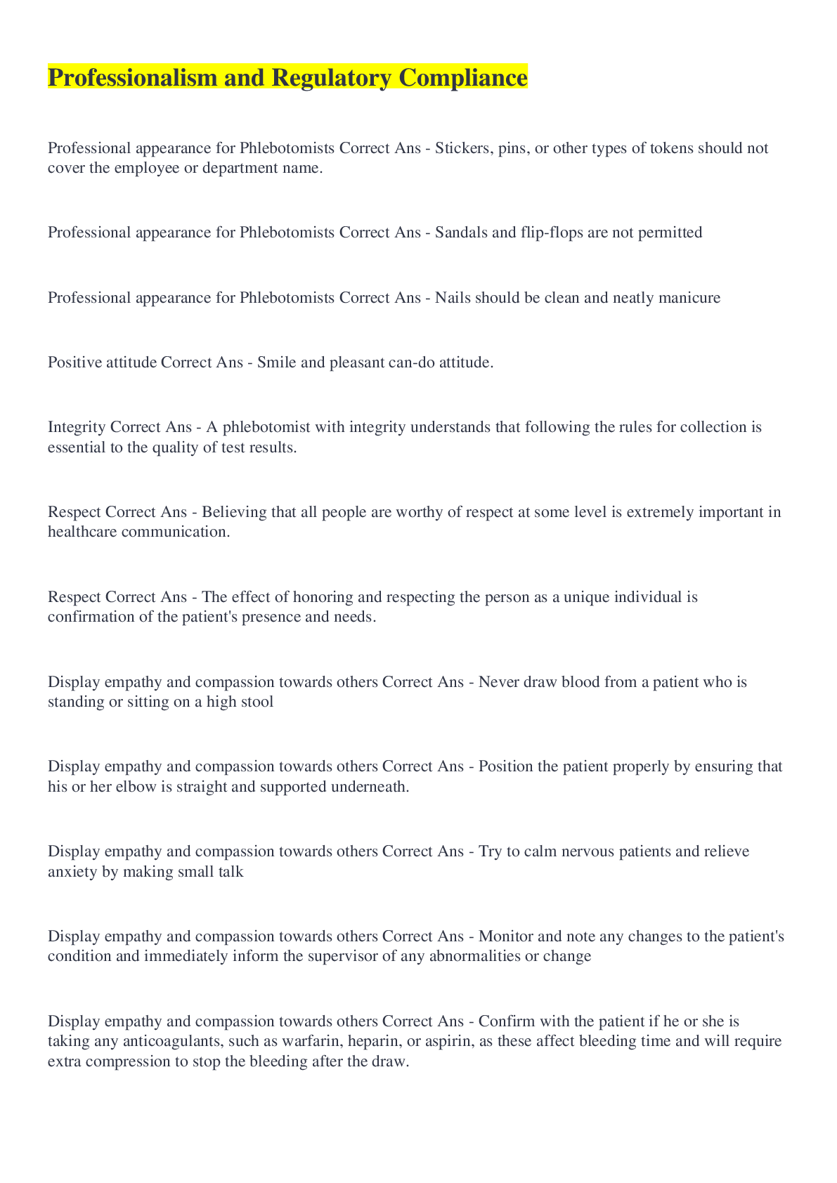 Human Resource Management > STUDY GUIDE > Professionalism and Regulatory Compliance (All)