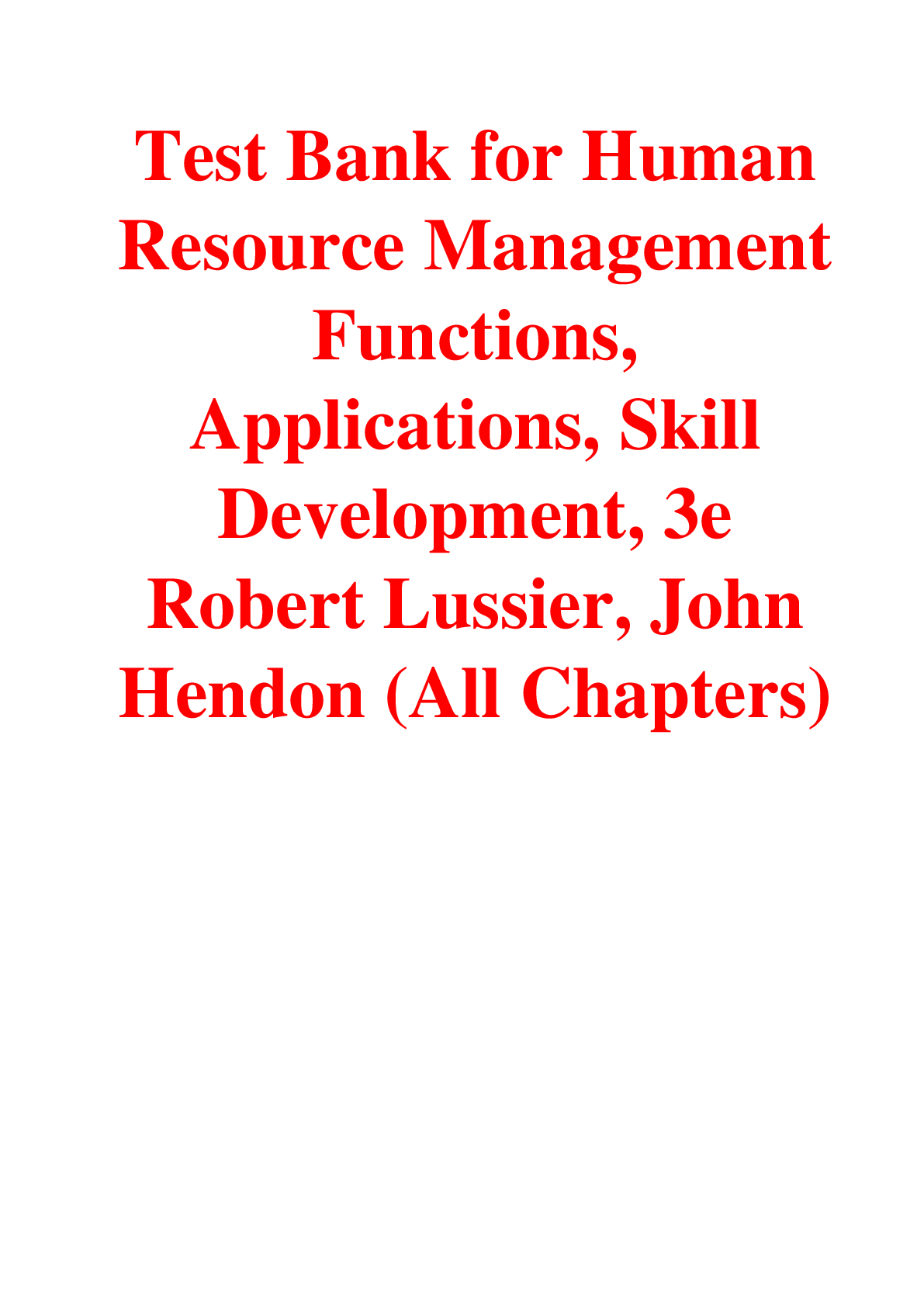 Human Resource Management > TEST BANKS > Human Resource Management Functions, Applications, Skill Development, 3e Robert N. Lussier, John Hendon (Test Bank) (All)