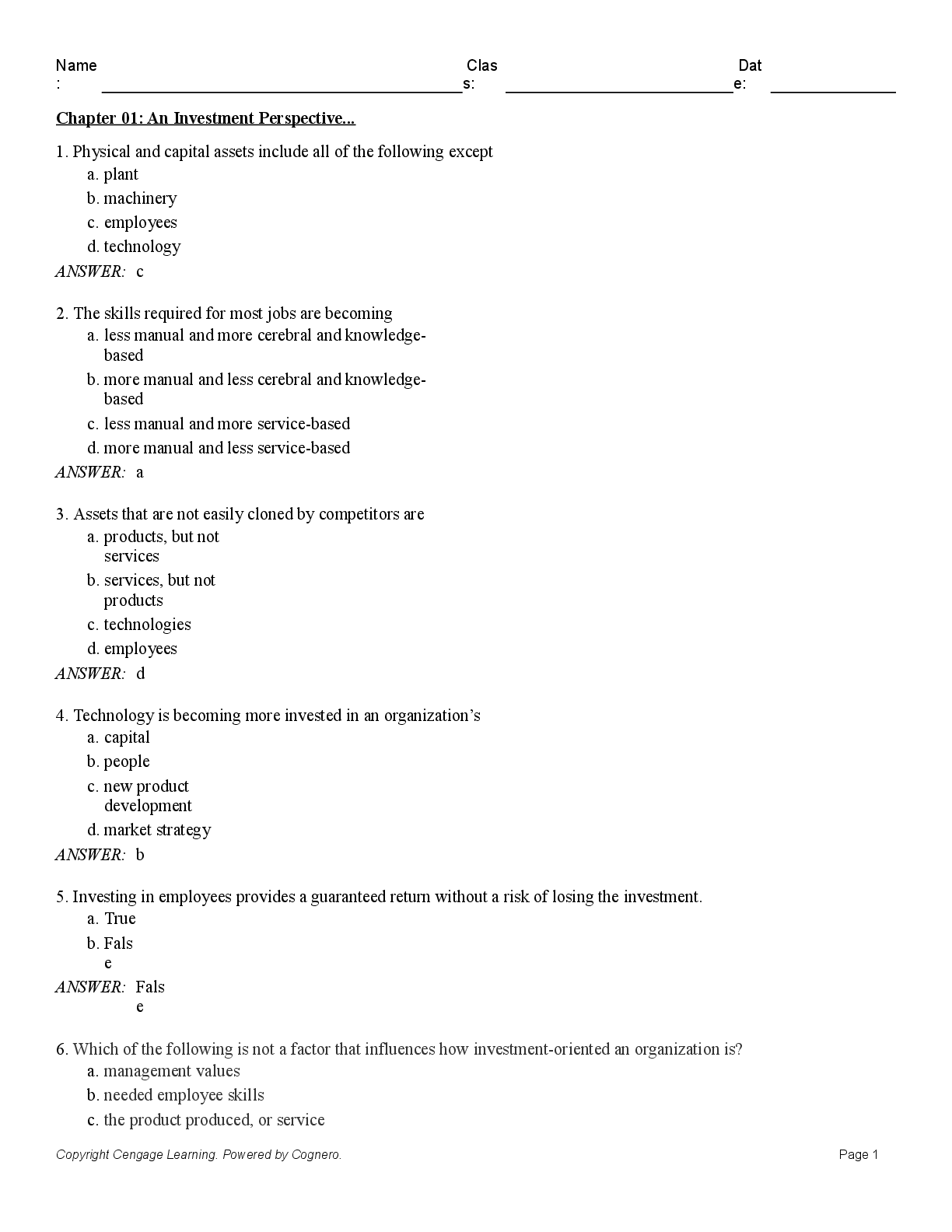 Human Resource Management > TEST BANKS > Test Bank for Managing Human Resources 12th Edition By Wayne Cascio | All Chapters 1-16 (All)