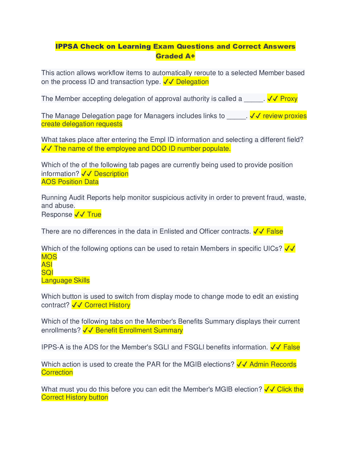 Human Resource Management > QUESTIONS & ANSWERS > IPPSA Check on Learning Exam Questions and Correct Answers Graded A+ (All)