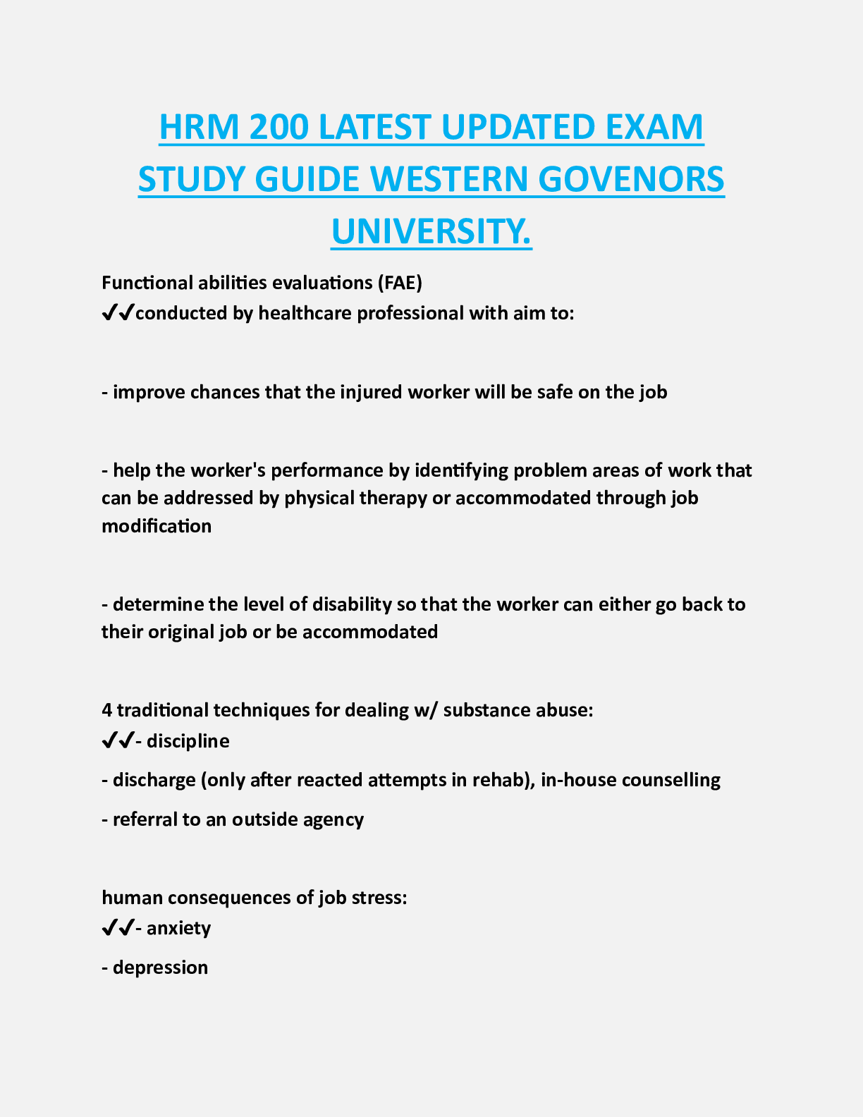 Human Resource Management > EXAM > HRM 200 LATEST UPDATED EXAM STUDY GUIDE WESTERN GOVENORS UNIVERSITY. (All)