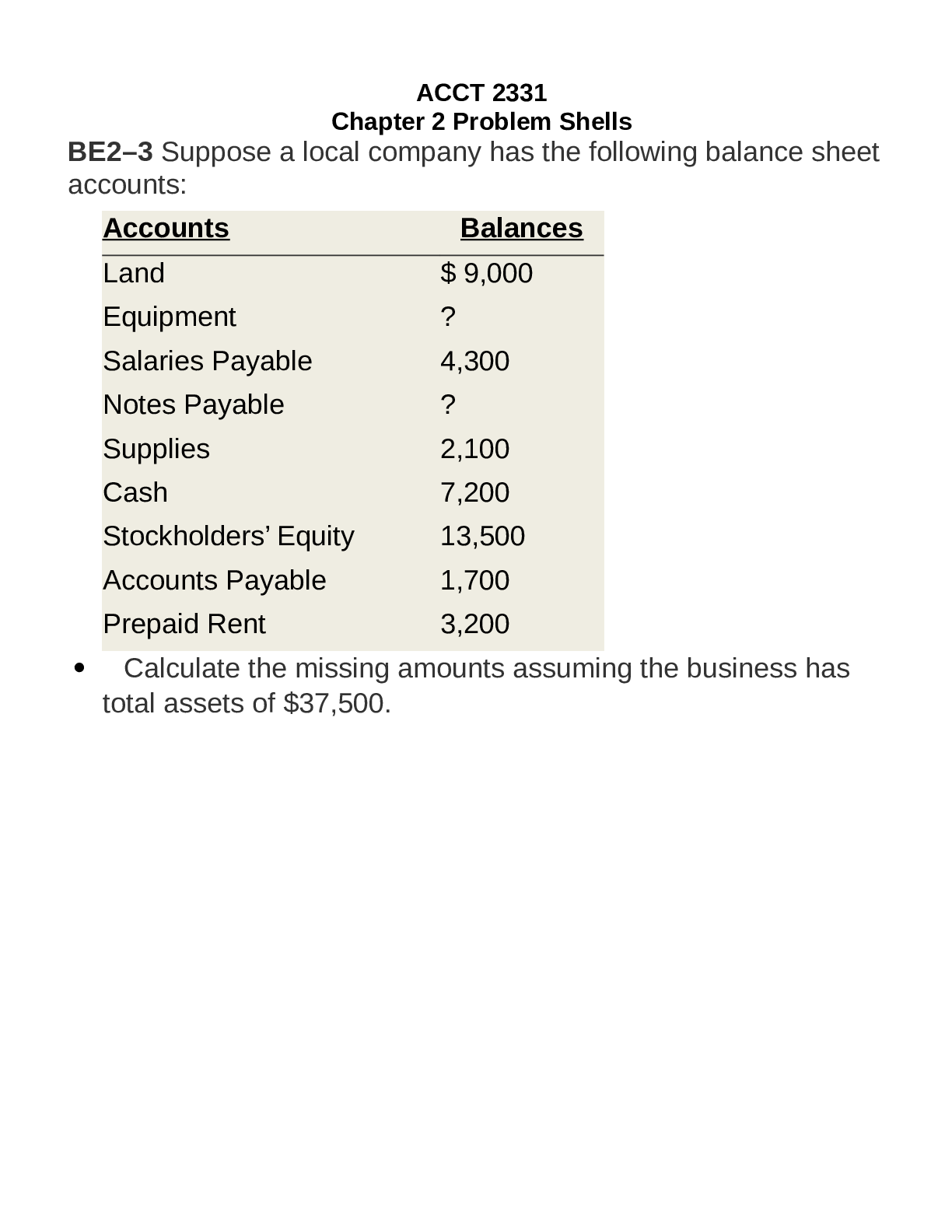 Financial Accounting > EXAMs > ACCT 2331-ACCT 2331 University of Houston-Chap 2 Problem Shells (All)