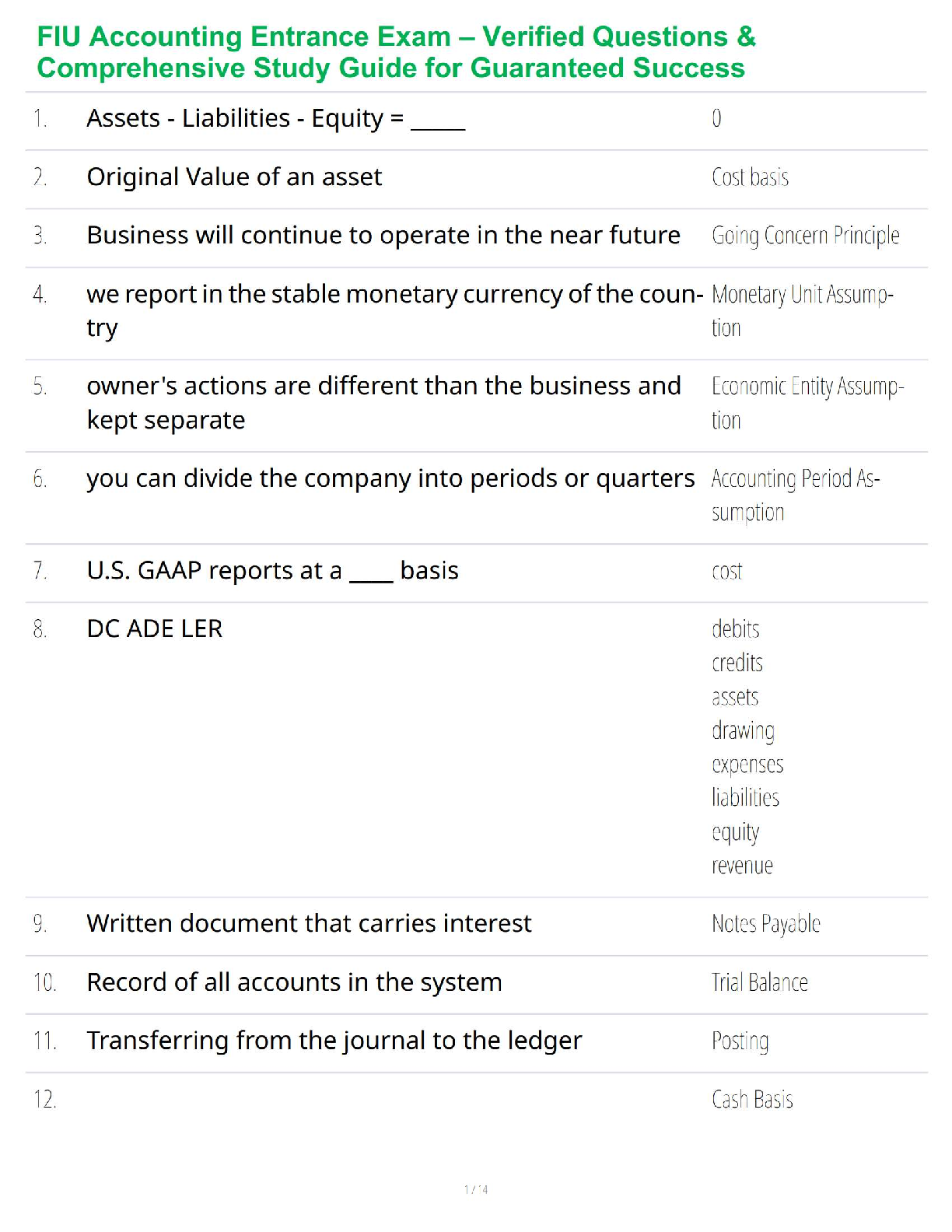 Financial Accounting > STUDY GUIDE > FIU Accounting Entrance Exam – Verified Questions & Comprehensive Study Guide for Guaranteed Success (All)