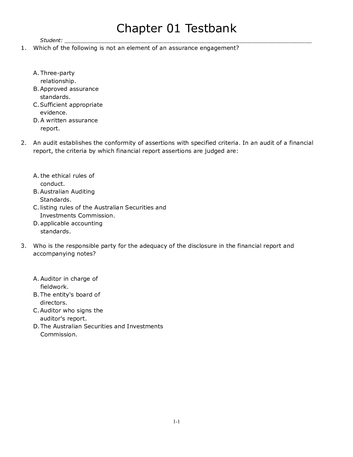 Financial Accounting > TEST BANKS > Auditing, Assurance Services & Ethics in Australia. 10e Arens, Best, Shailer, Fiedler, Elder, Beasley (Test Bank) (All)