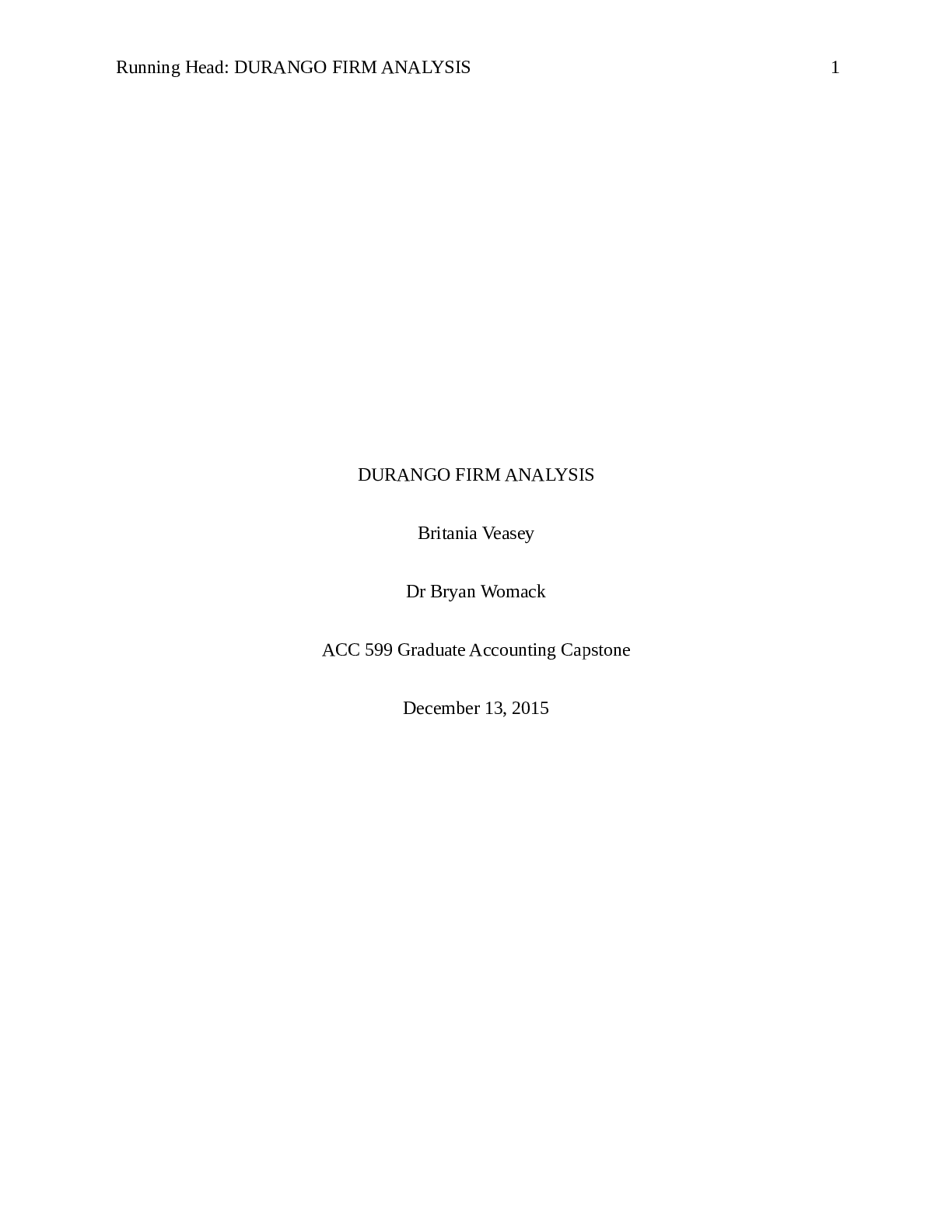Financial Accounting > ESSAY > ACC 599 Assignment 3: DURANGO FIRM ANALYSIS. Latest 2021 (All)