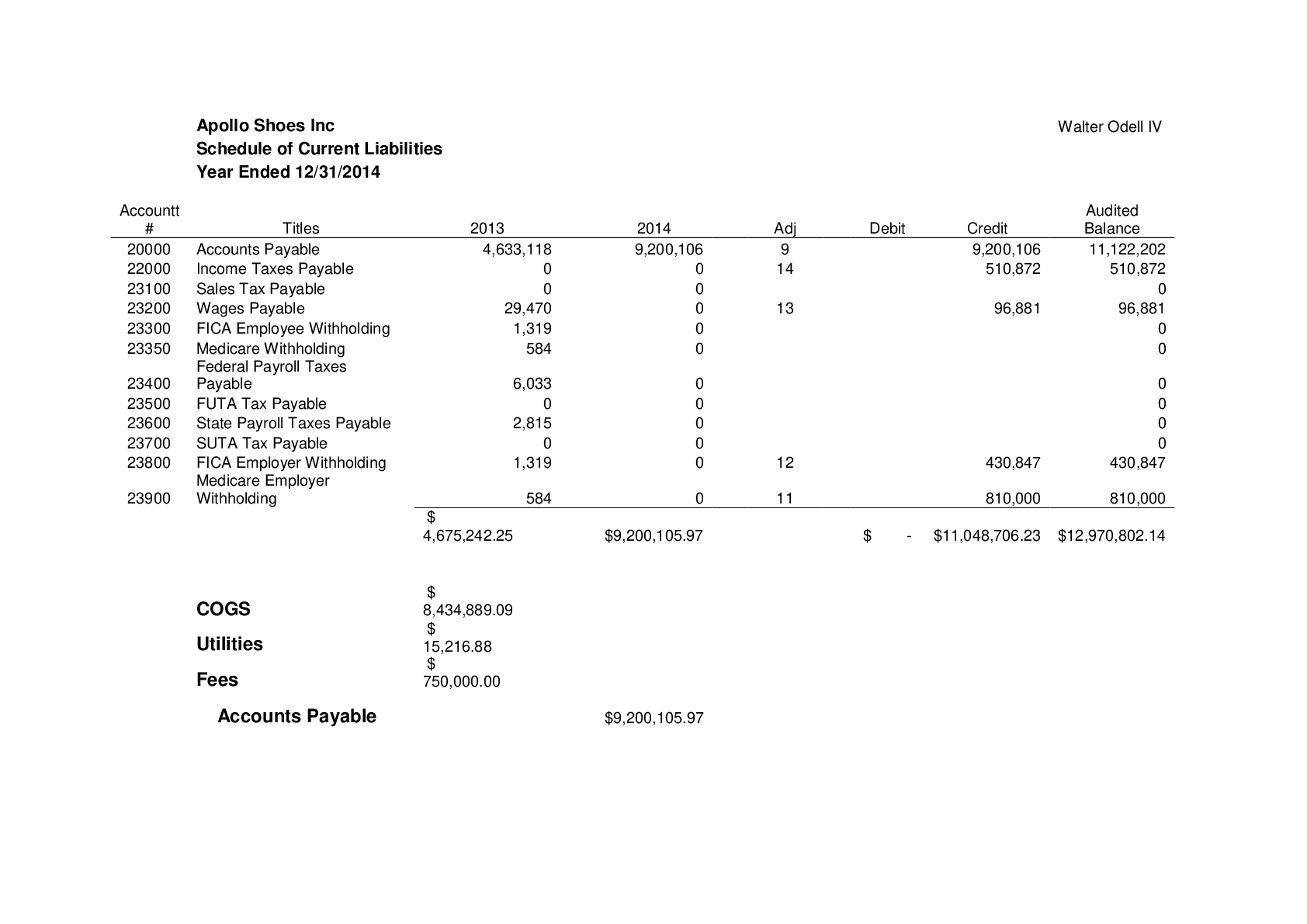 Financial Accounting > CASE STUDY > Apollo Shoes Inc Schedule of Current Liabilities Year Ended 12/31/2014 (All)