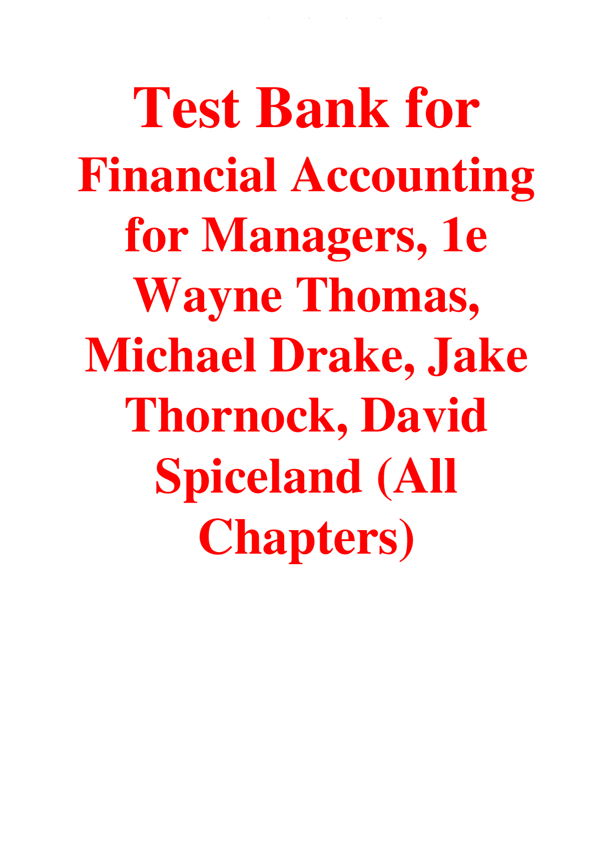 Financial Accounting > TEST BANKS > Test Bank for Financial Accounting for Managers, 1st Edition By Wayne Thomas, Michael Drake, Jak (All)