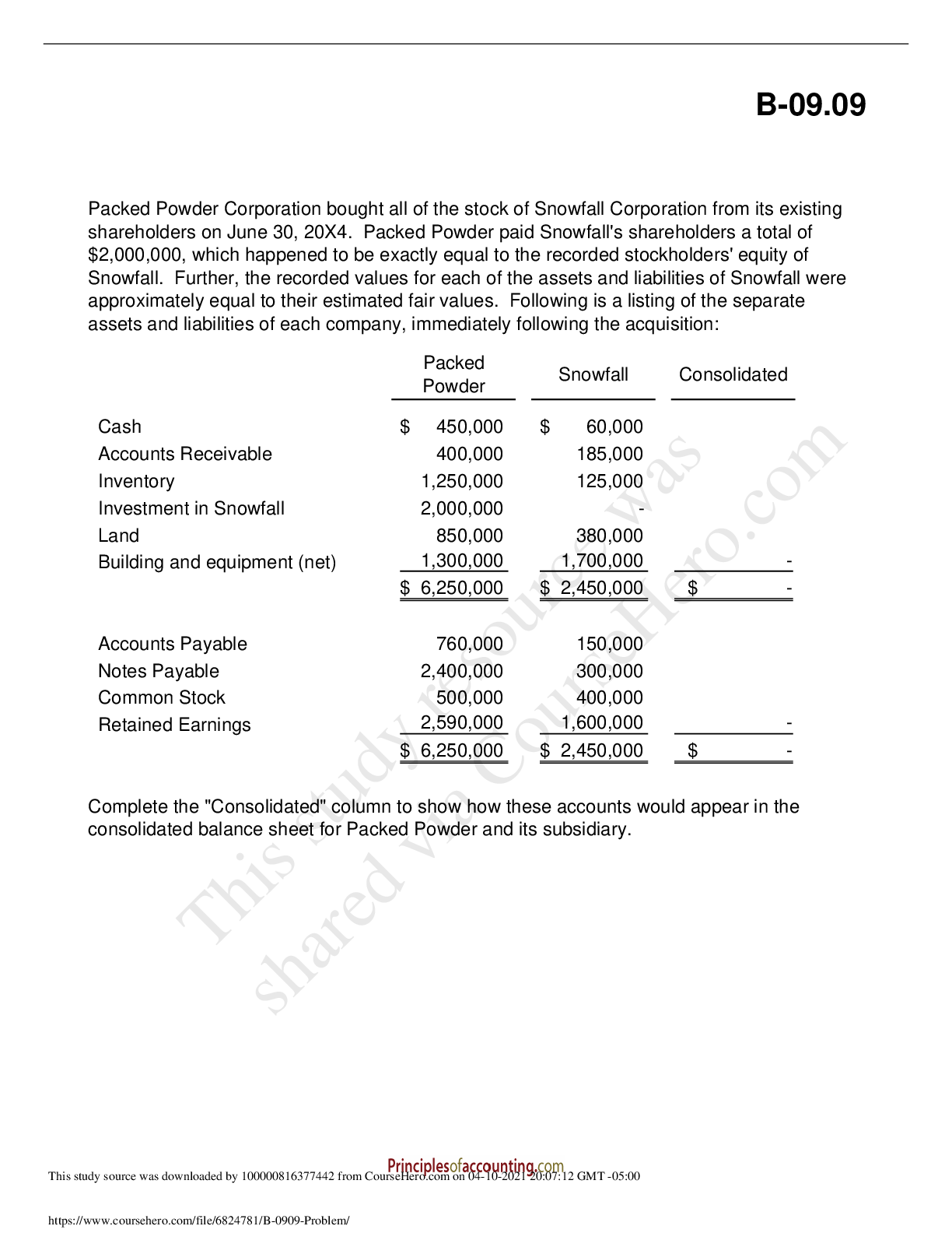 Financial Accounting > QUESTIONS & ANSWERS > Florida International University - ACCOUNTING 101B-09.09 Problem (All)