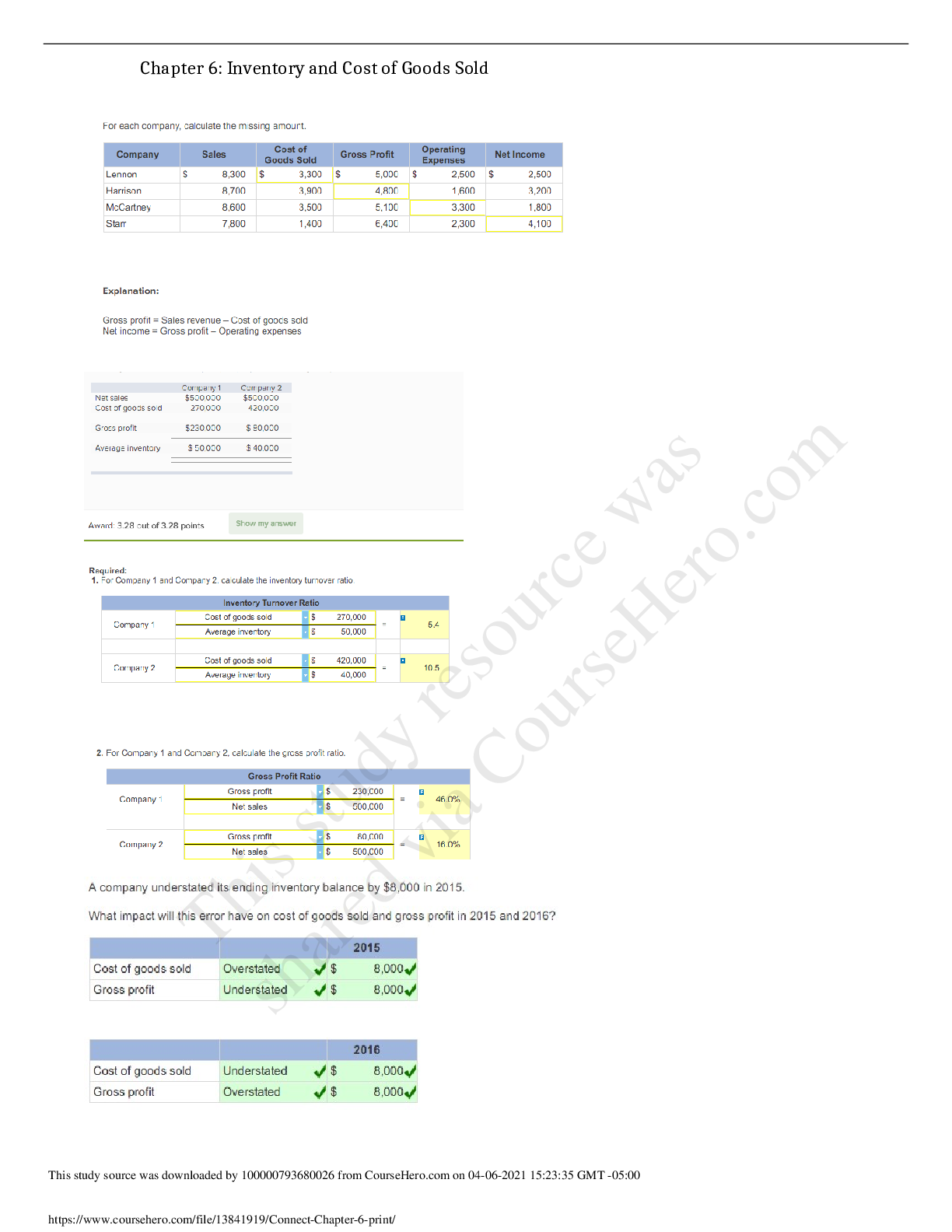Financial Accounting > QUESTIONS & ANSWERS > Baruch College, CUNY - ACC 2101Connect Chapter 6 (All)