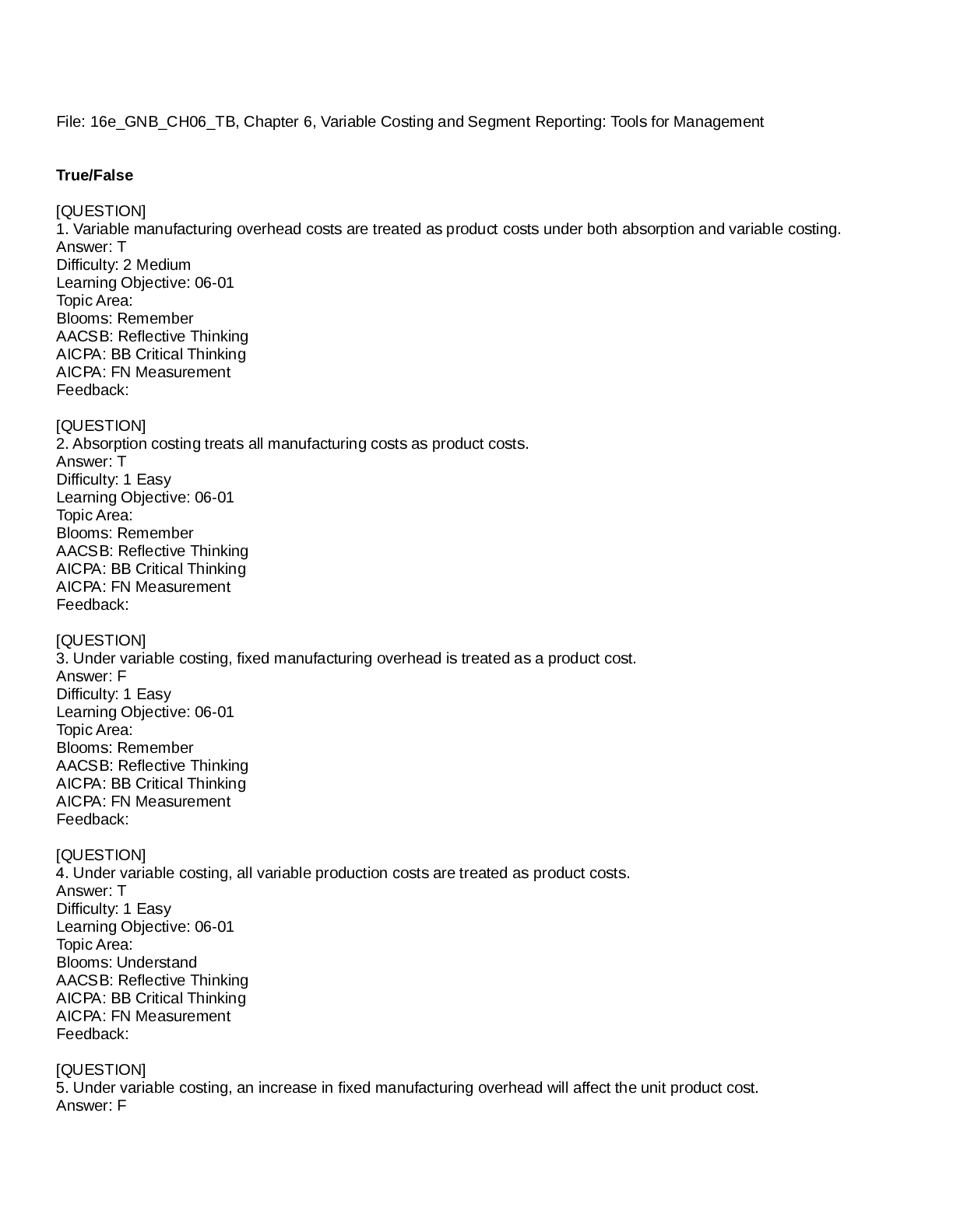 Financial Accounting > TEST BANKS > James Madison University COB 24216e_GNB_CH06_TB-final-REVIEWED AND VERIFIED BY EXPERTS (All)