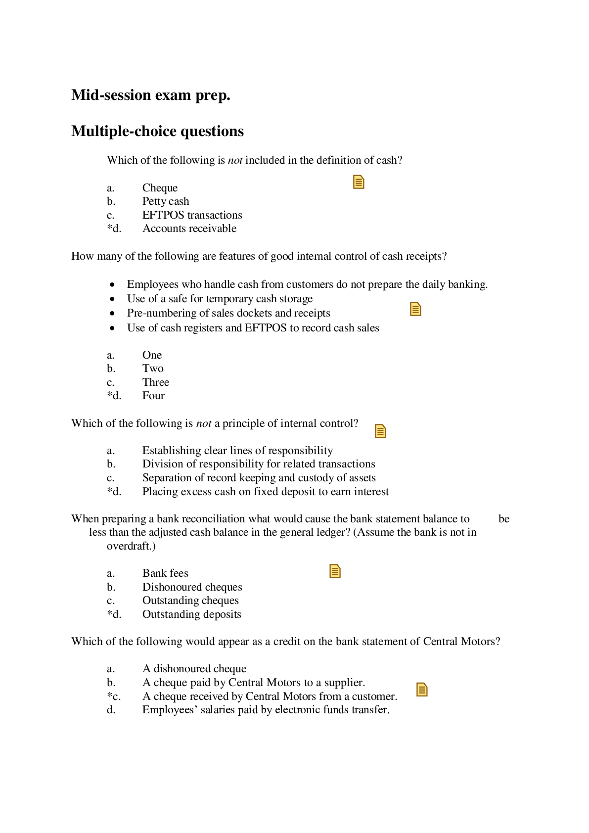 Financial Accounting > TEST BANKS > University of Wollongong ACCY MISC Mid-session Sample MCQs-VERIFIED BY EXPERTS-GRADED A+ (All)
