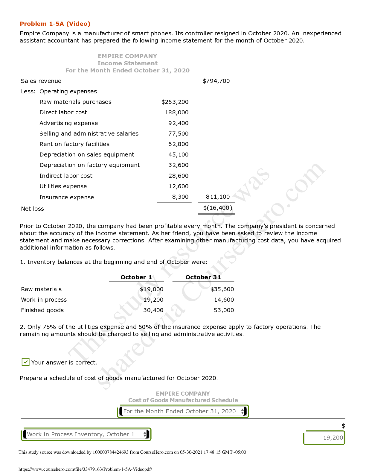Financial Accounting > QUESTIONS & ANSWERS > North Carolina A&T State University ACCT 446Problem 1-5A (Video). (All)