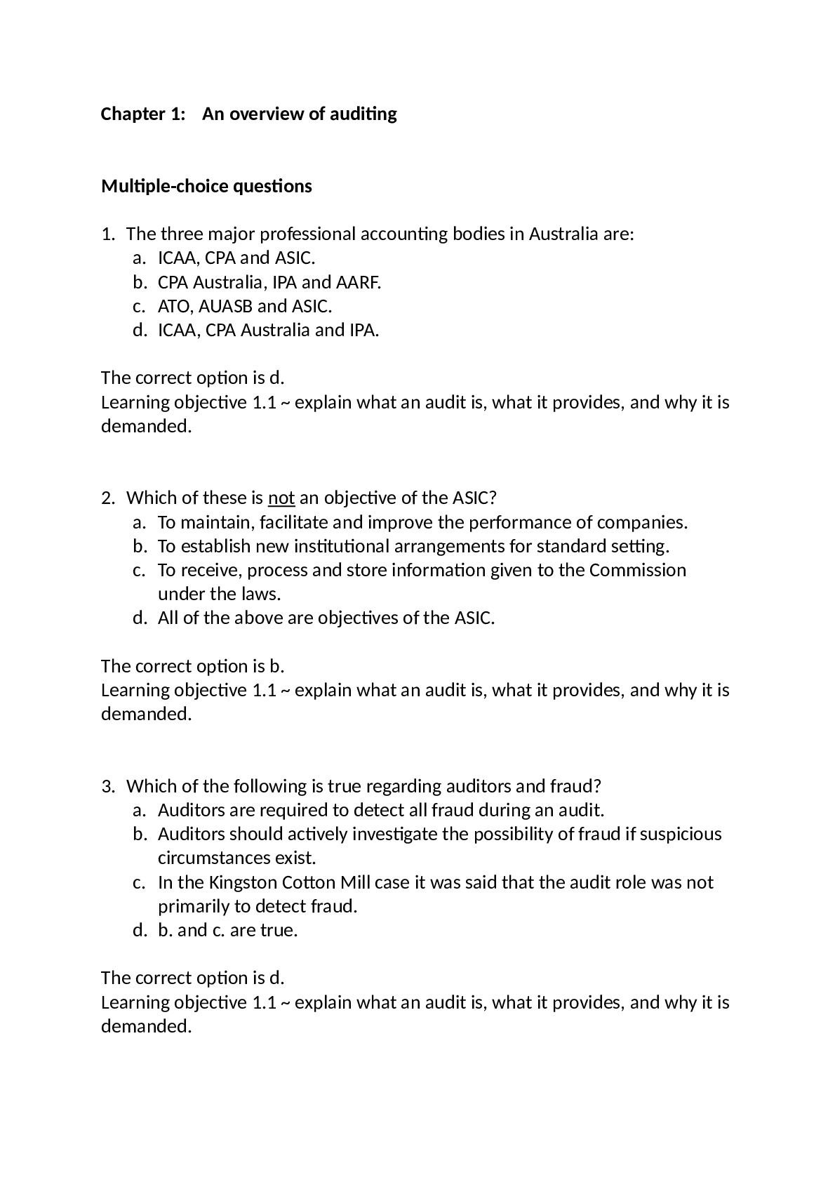 Financial Accounting > QUESTIONS & ANSWERS > auditing quizzes chapterwise -QUESTIONS WITH VERIFIED ANSWERS-A COMPLETE GUIDE FOR EXAM PREPARATION (All)