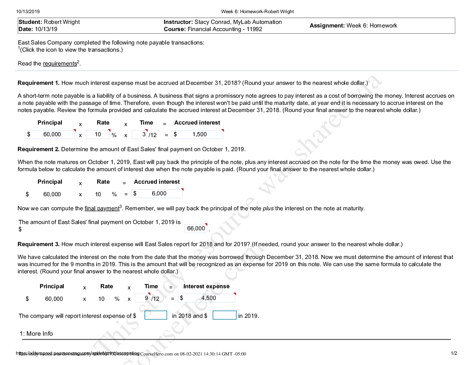 Financial Accounting > QUESTIONS & ANSWERS > week 6 Accounting homework assignment (All)