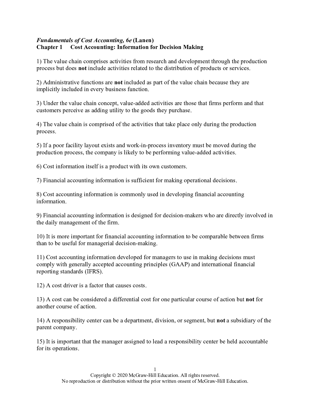 Financial Accounting > TEST BANKS > Fundamentals of Cost Accounting, 6th Edition by Lanen; Anderson; Maher Test Bank (All)
