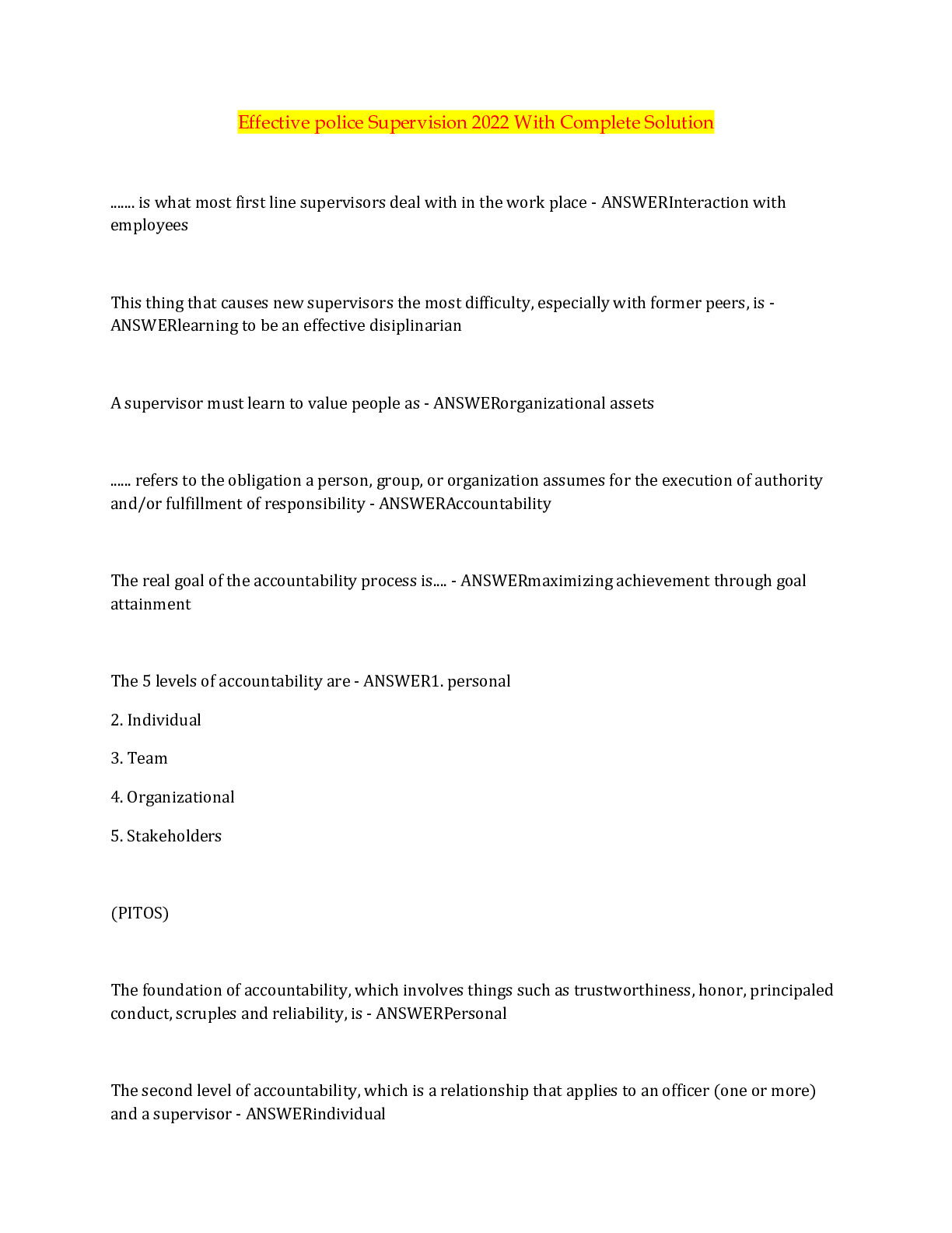 Financial Accounting > QUESTIONS & ANSWERS > Effective police Supervision 2022 With Complete Solution (All)