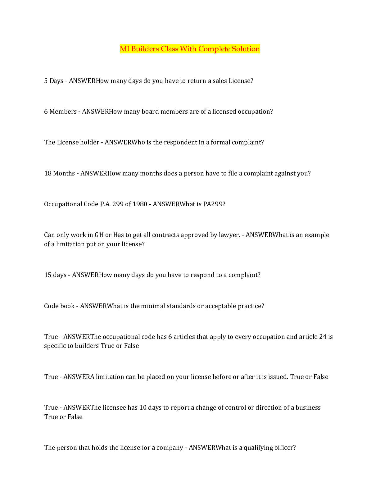 Financial Accounting > QUESTIONS & ANSWERS > MI Builders Class With Complete Solution (All)