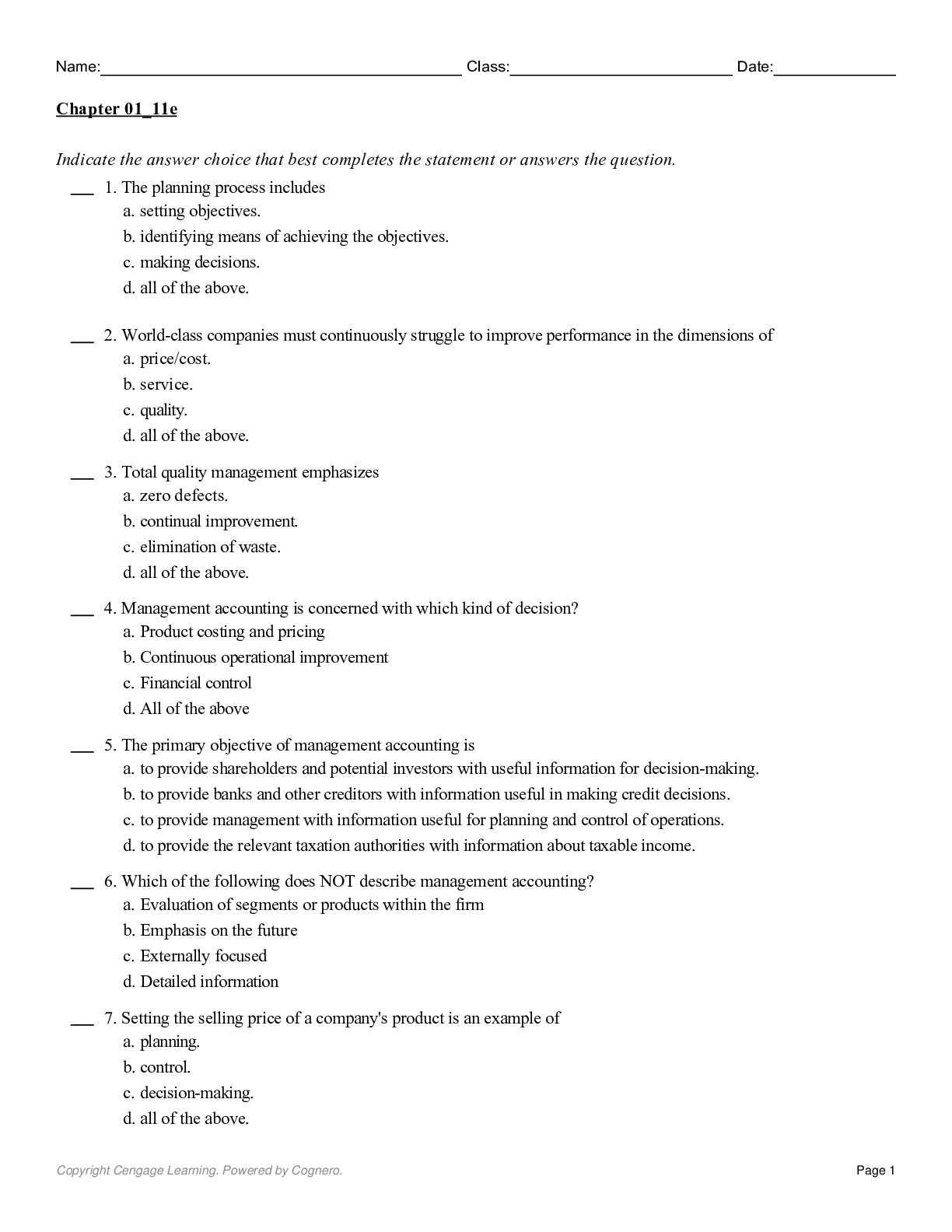 Financial Accounting > TEST BANKS > Management and Cost Accounting 11th Edition Tayles and Drury. All Chapters 1-26 | TEST BANK (All)