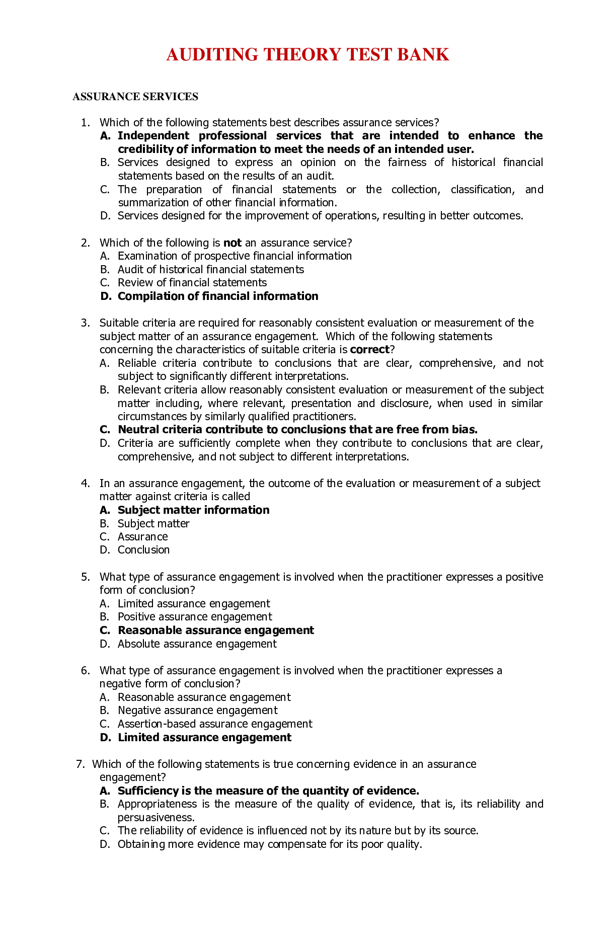 Financial Accounting > EXAM > AUDITING THEORY TEST BANK (All)