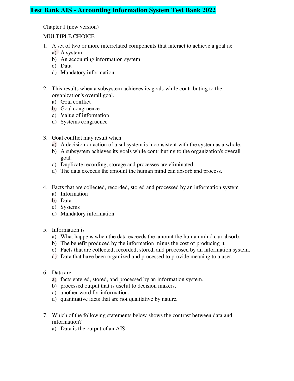 Financial Accounting > TEST BANKS > Test Bank AIS - Accounting information system test bank 2022 (All)