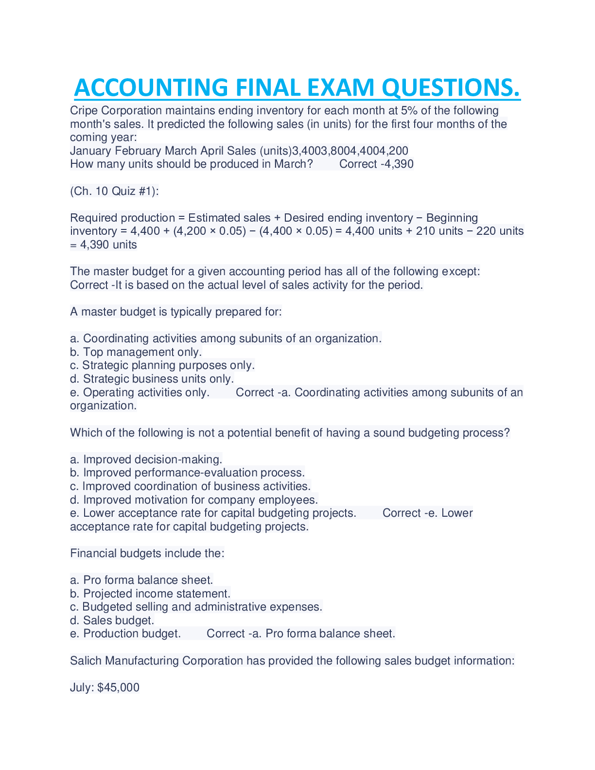 Financial Accounting > EXAM > ACCOUNTING FINAL EXAM QUESTIONS WITH COMPLETE SOLUTION, 100% VERIFIED. (All)
