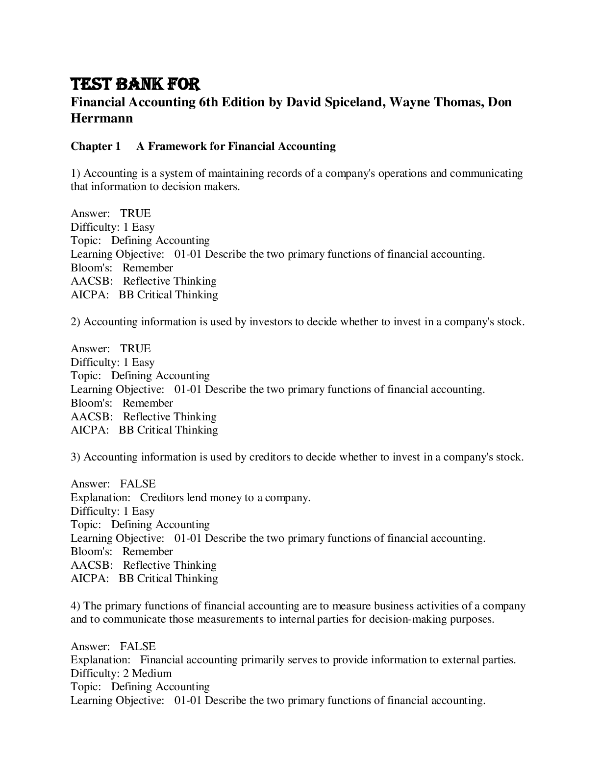 Financial Accounting > TEST BANKS > Financial Accounting 6th Edition By Spiceland , Thomas , Herrmann TEST BANK (All)