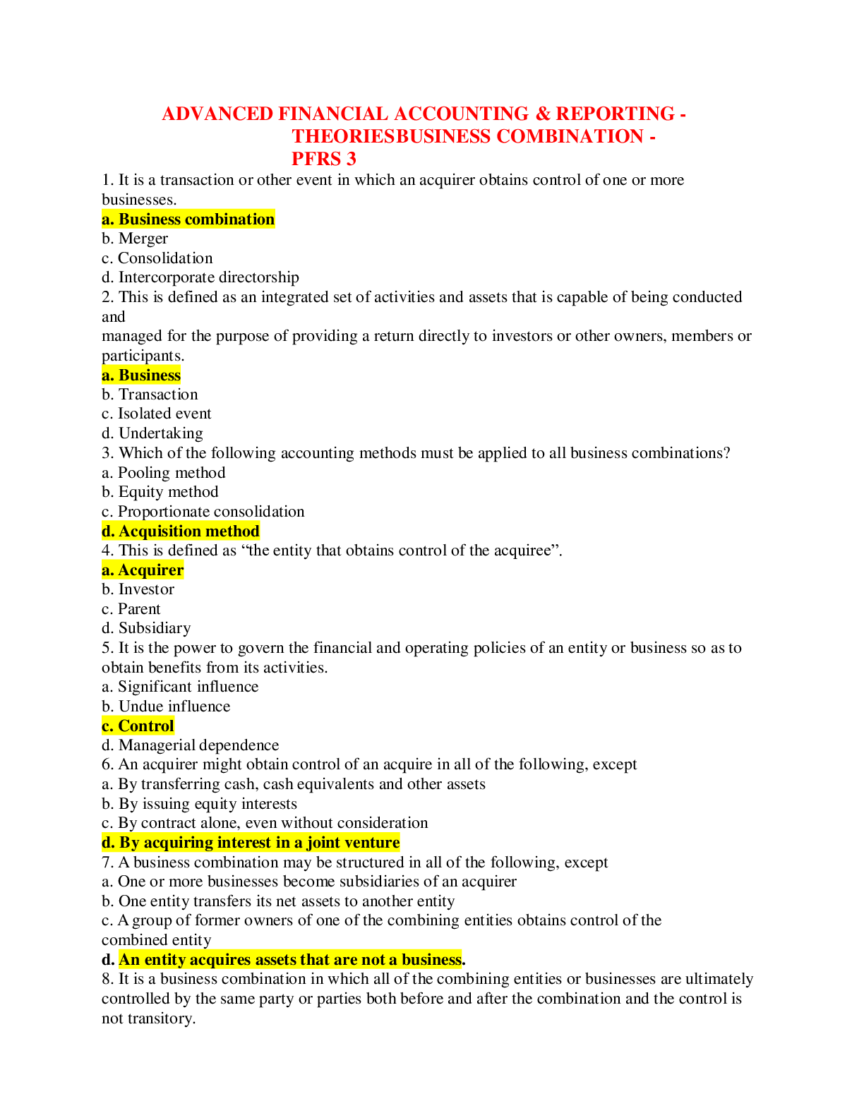 Financial Accounting > TEST BANKS > TEST BANK for Advanced Financial Accounting 12th Edition by David Cottrell, Theodore Christensen and Cassy Budd | Complete Chapters 1-20 (All)