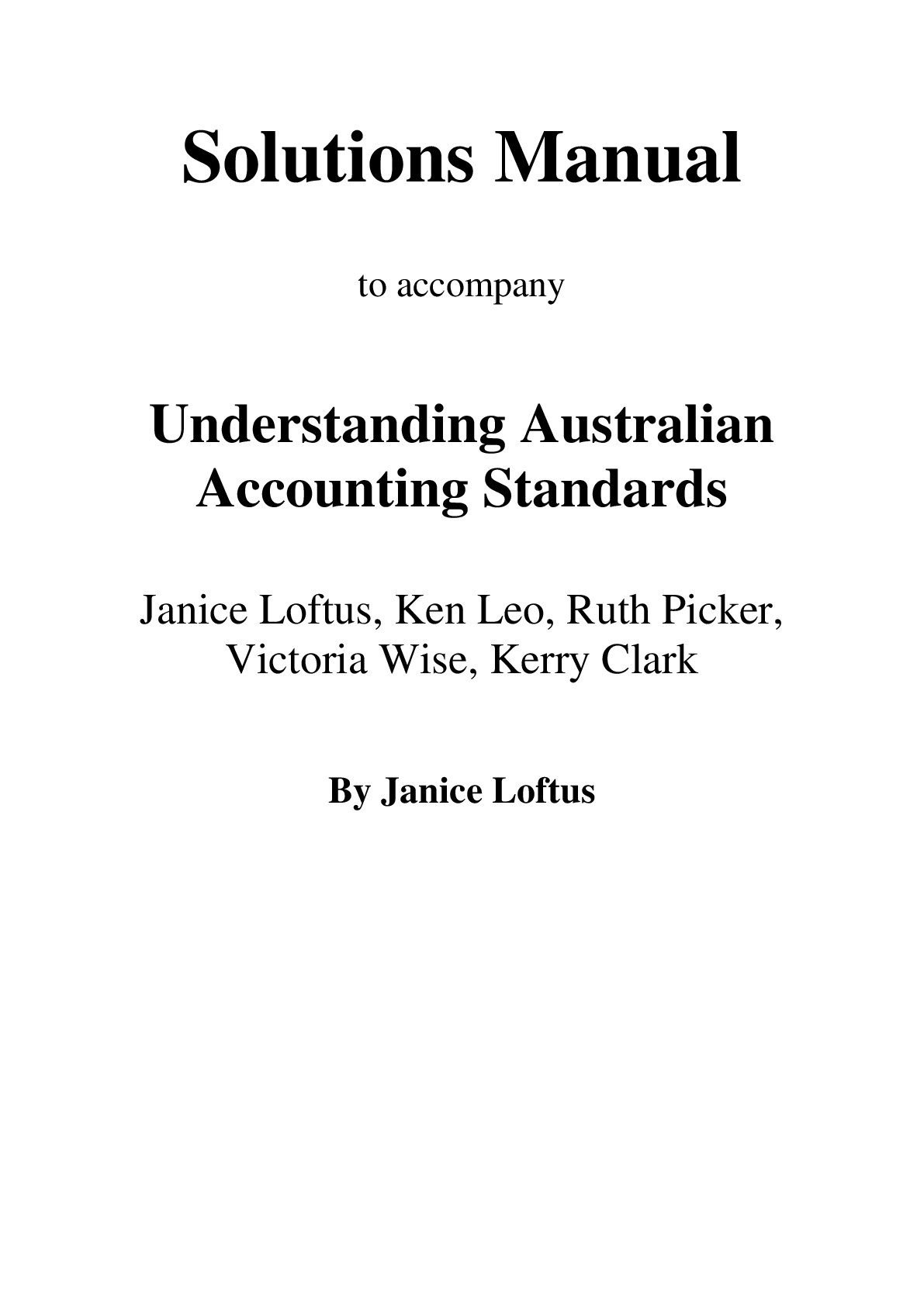 Financial Accounting > SOLUTIONS MANUAL > Understanding Australian Accounting Standards 1e Janice Loftus Ken Leo Ruth Picker Victoria Wise Kerry Clark (Solution Manual) (All)