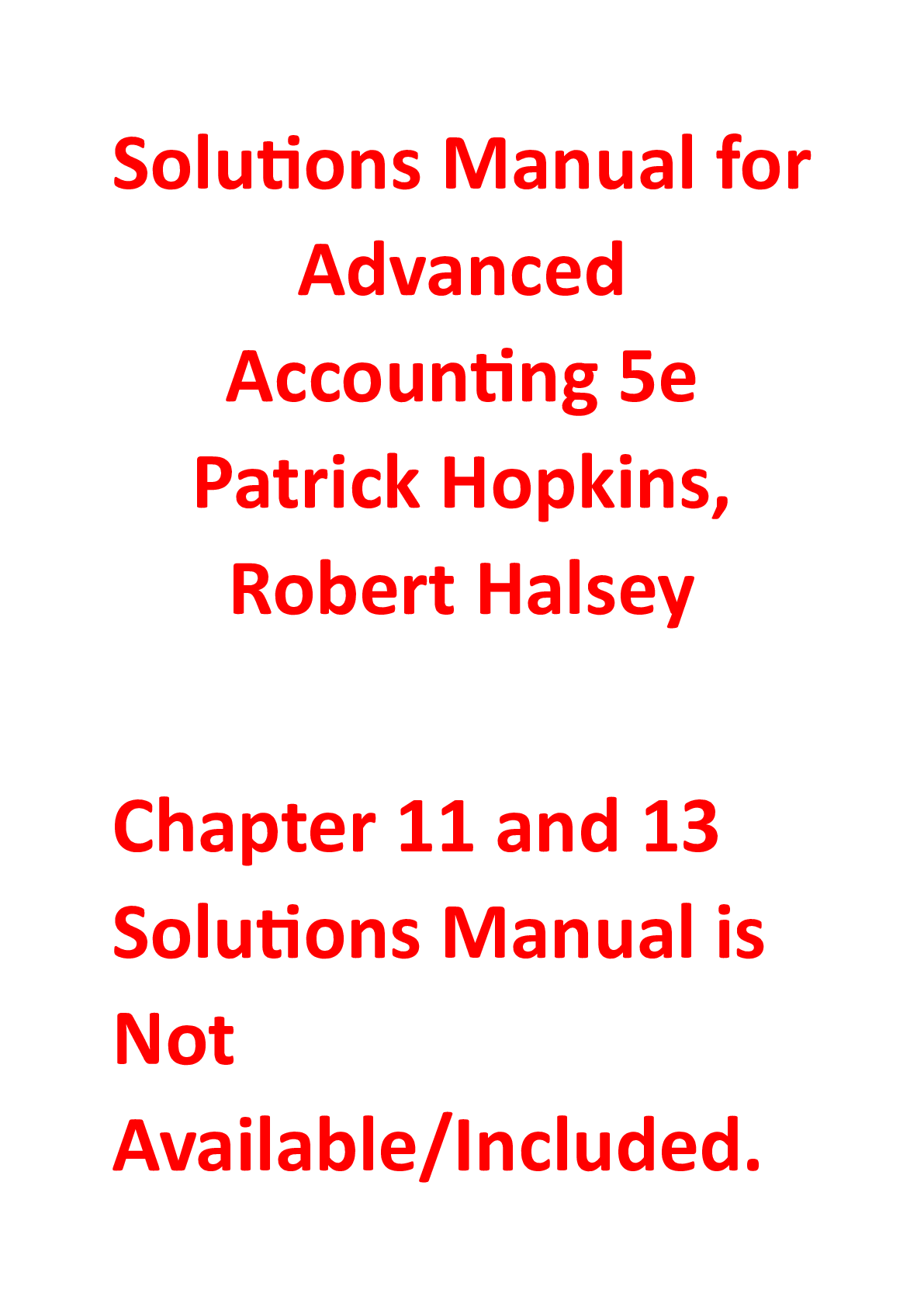 Financial Accounting > SOLUTIONS MANUAL > Advanced Accounting 5e Patrick Hopkins, Robert Halsey (Solutions Manual) Ch 11 and 13 Not Available (All)