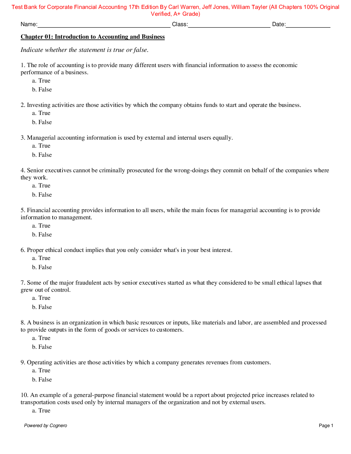 Financial Accounting > TEST BANKS > Test Bank for Corporate Financial Accounting 17th Edition By Carl Warren, Jeff Jones, William Tayler (All Chapters, 100% Original Verified, A+ Grade) (All)
