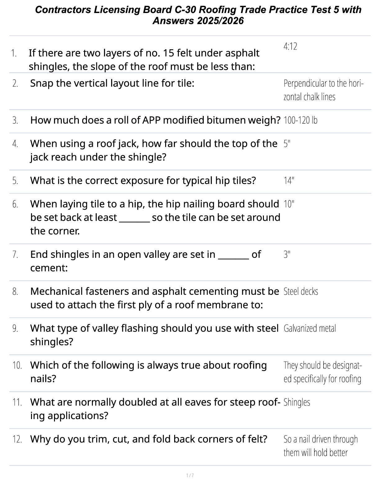Architecture > STUDY GUIDE > Contractors Licensing Board Roofing Quiz: Practice Questions and Explanations 2025/2026 (All)