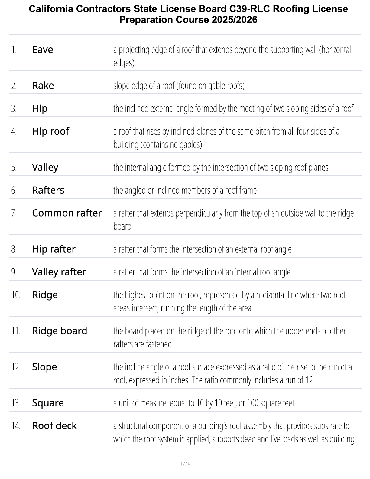 Architecture > STUDY GUIDE > California Contractors State License Board C39-RLC Roofing License Preparation Course 2025/2026 (All)