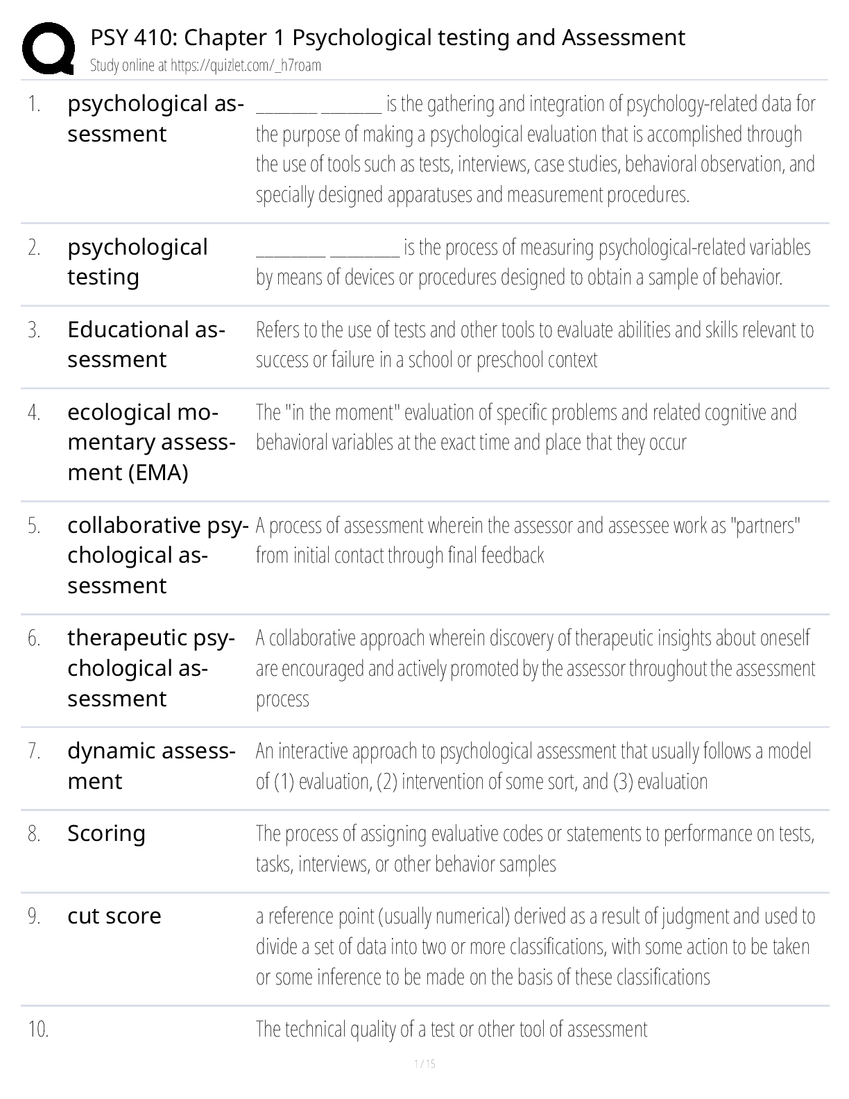 Psychology > EXAM PROCTORED > PSY 410: Chapter 1 Psychological testing and Assessment (All)