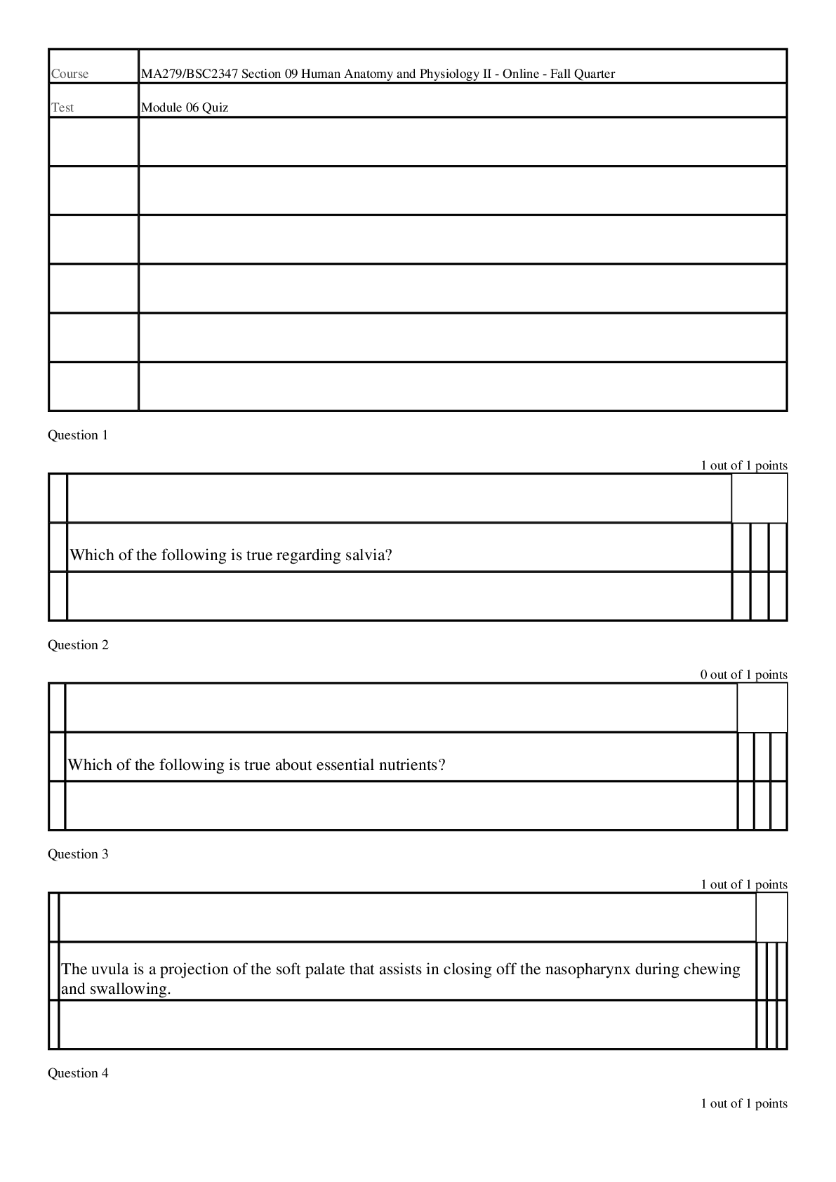 Psychology > QUESTIONS & ANSWERS > BSC2347 Module 06 Quiz Section 09 Human Anatomy and Physiology II - Online - Fall Quarter (All)