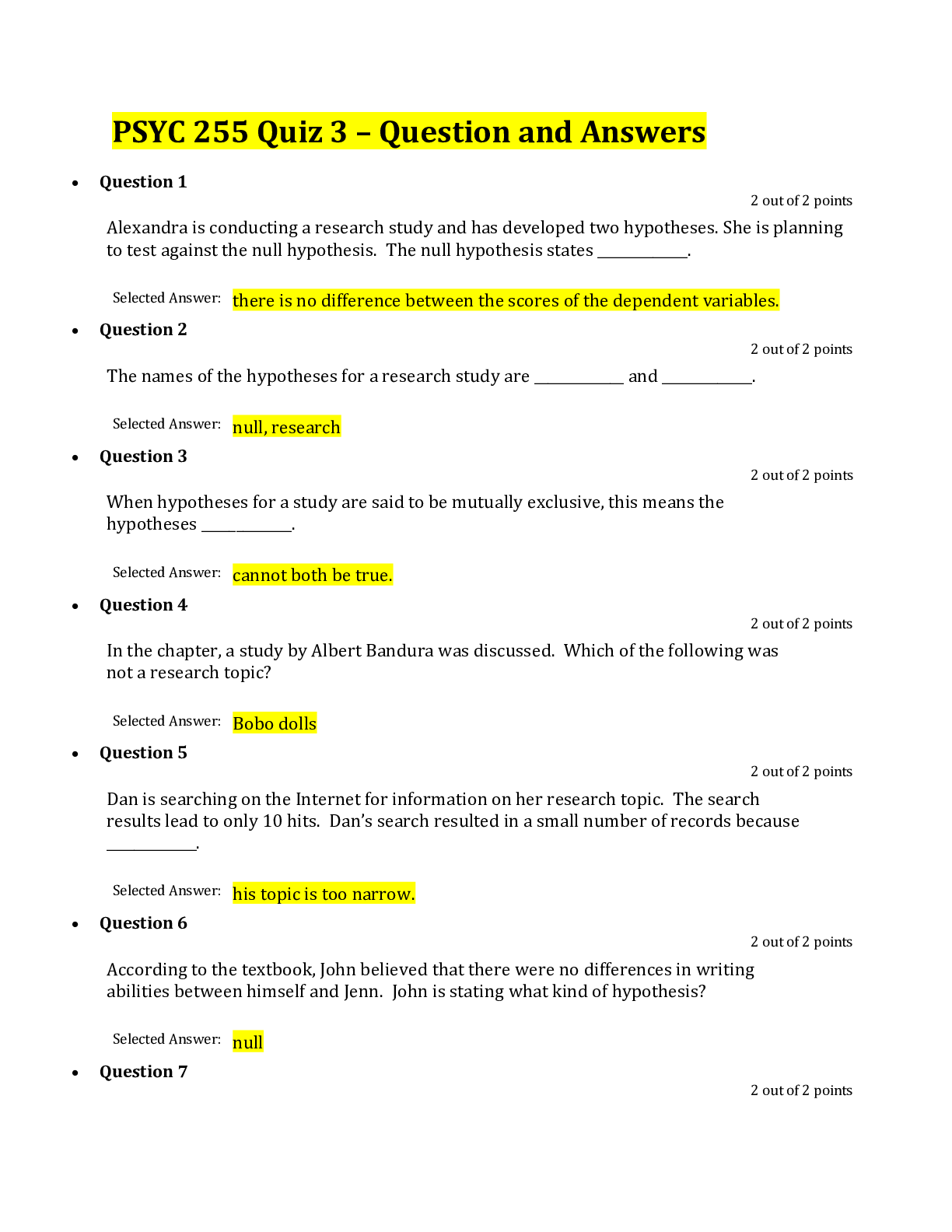 Psychology > QUESTIONS & ANSWERS > PSYC 255 Quiz 3 – Question and Answers (All)