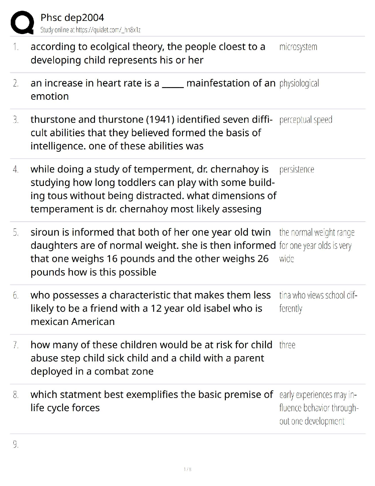 Psychology > QUESTIONS & ANSWERS > PHSC DEP 2004 Study Guide / Developmental Psychology Final & Midterm Prep / 2025 Update (All)