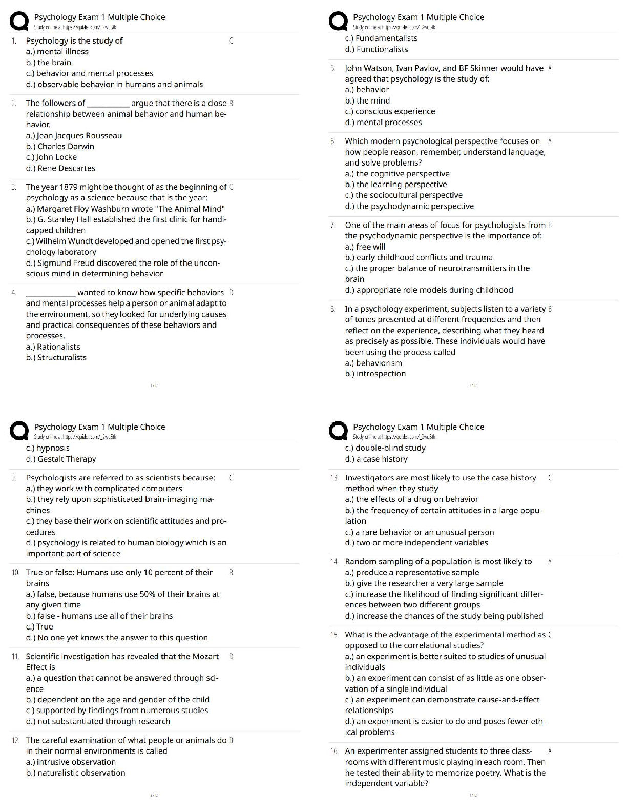 Psychology > QUESTIONS & ANSWERS > Psychology Exam 1 / Score 100% / New Version / 2025 Update – Multiple Choice Study Guide & Test Bank (All)