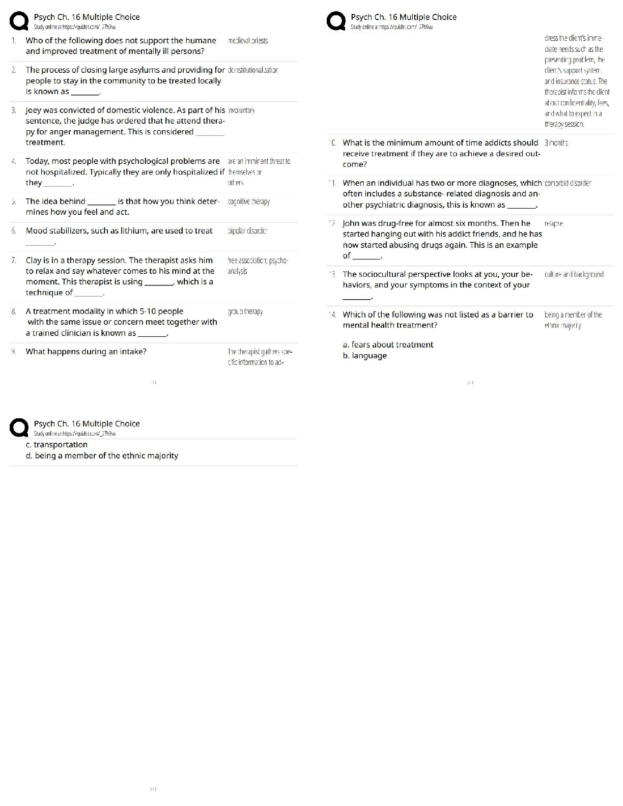 Psychology > QUESTIONS & ANSWERS > Psych Ch. 16 / Score 100% / New Version / 2025 Update – Multiple Choice Study Guide & Test Bank (All)