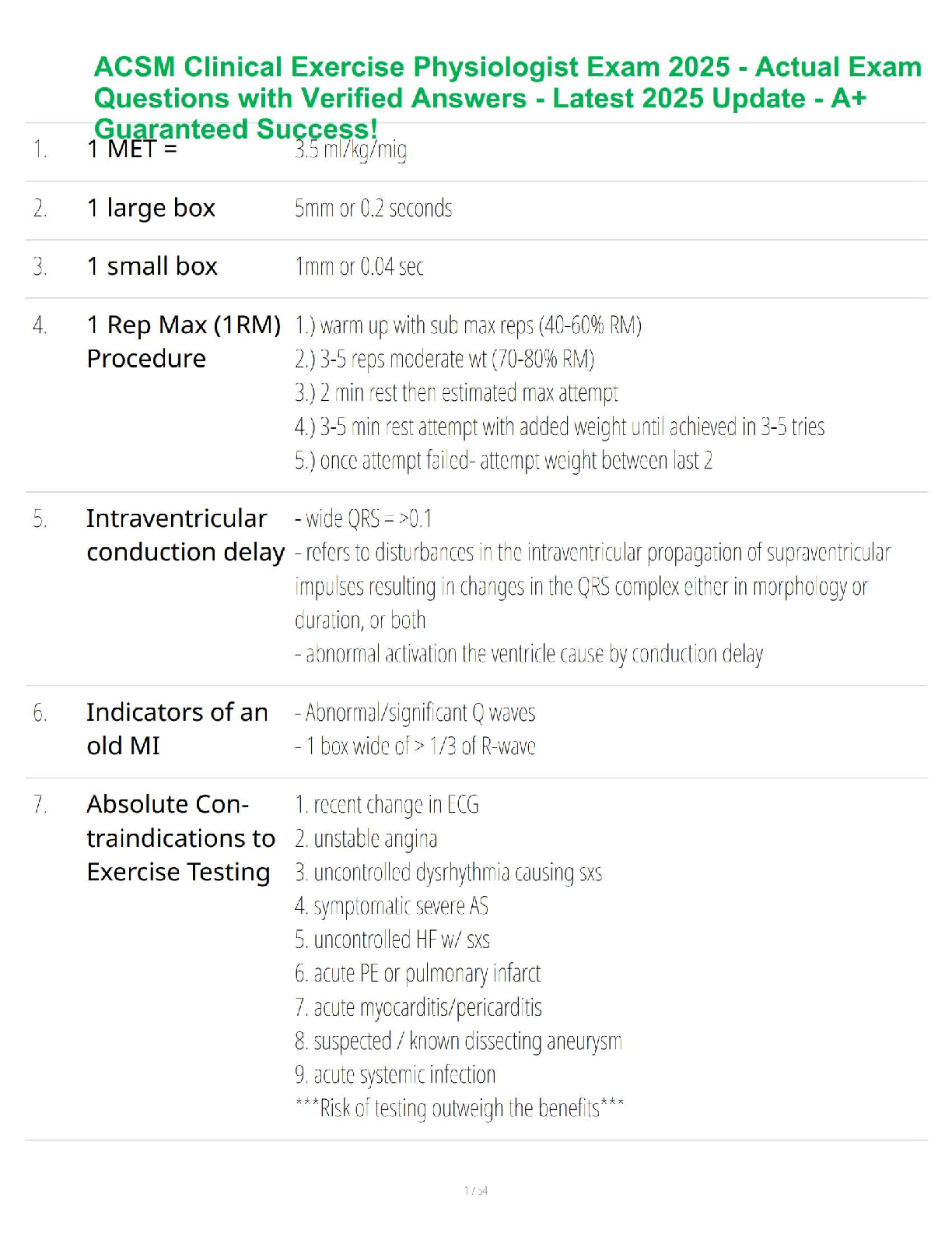 Psychology > QUESTIONS & ANSWERS > ACSM Clinical Exercise Physiologist Exam 2025–2026 - Verified Questions & Answers - Latest Update - A+ Graded & Guaranteed Success! (All)