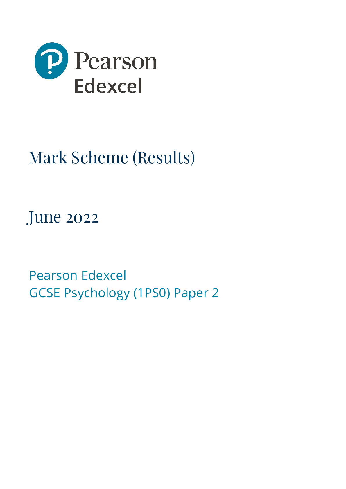 Psychology > MARK SCHEMES > Mark Scheme (Results) June 2022 Pearson Edexcel GCSE Psychology (1PS0) Paper 2 Edexcel and BTEC Qualifications (All)