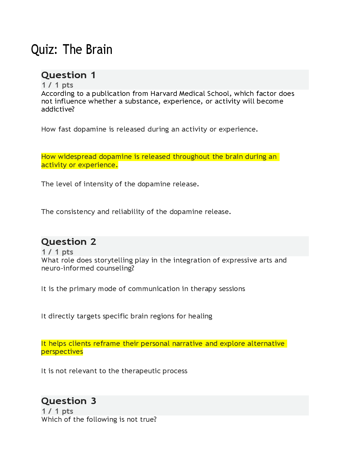 Psychology > EXAM > COUC 500 Week 7 Quiz: The Brain | Liberty University (All)