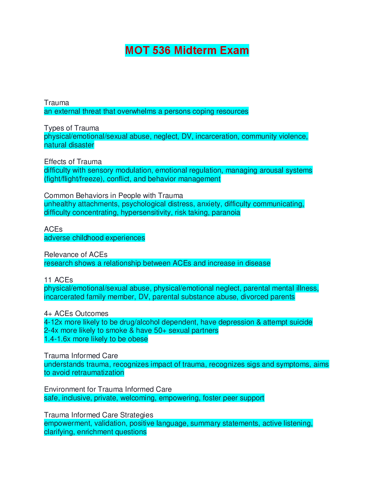 Psychology > EXAM > MOT 536 Midterm Exam | Questions and Answers (All)