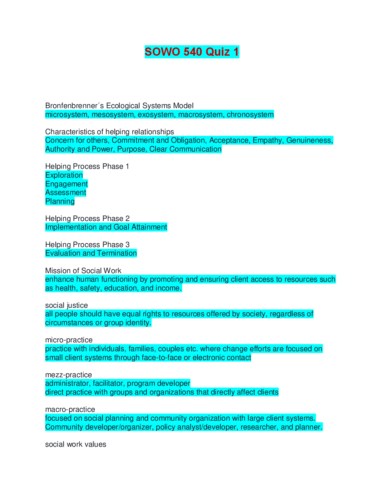 Psychology > EXAM > SOWO 540 Quiz 1 | Complete Solutions (Answered) (All)