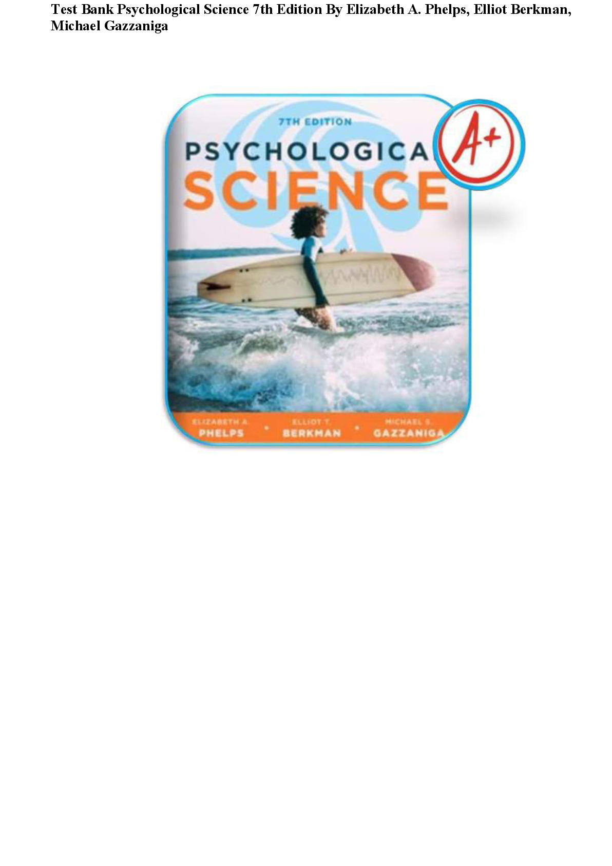 Psychology > TEST BANKS > Test Bank Psychological Science 7th Edition By Elizabeth A. Phelps, Elliot Berkman, Michael Gazzaniga Complete All Chapters Updated 2025 Rated A+ (All)