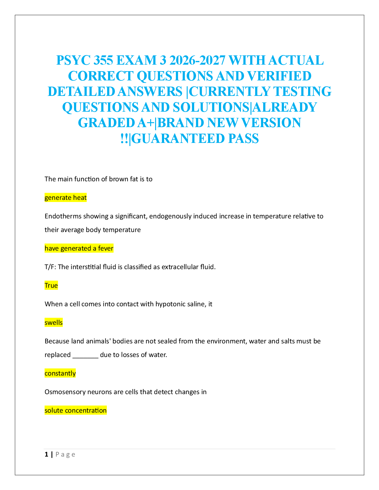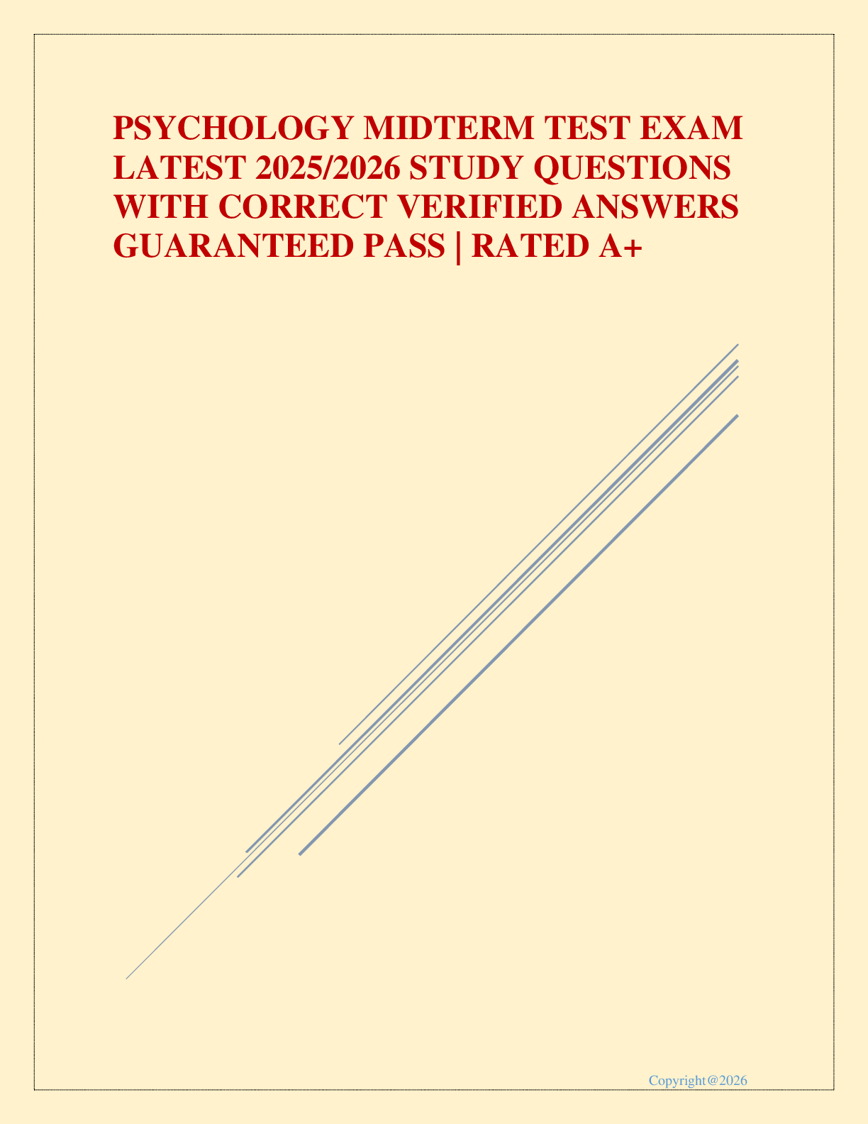 Psychology > EXAM > PSYCHOLOGY MIDTERM TEST EXAM LATEST 2025/2026 STUDY QUESTIONS WITH CORRECT VERIFIED ANSWERS GUARANTEED PASS | RATED A+ (All)