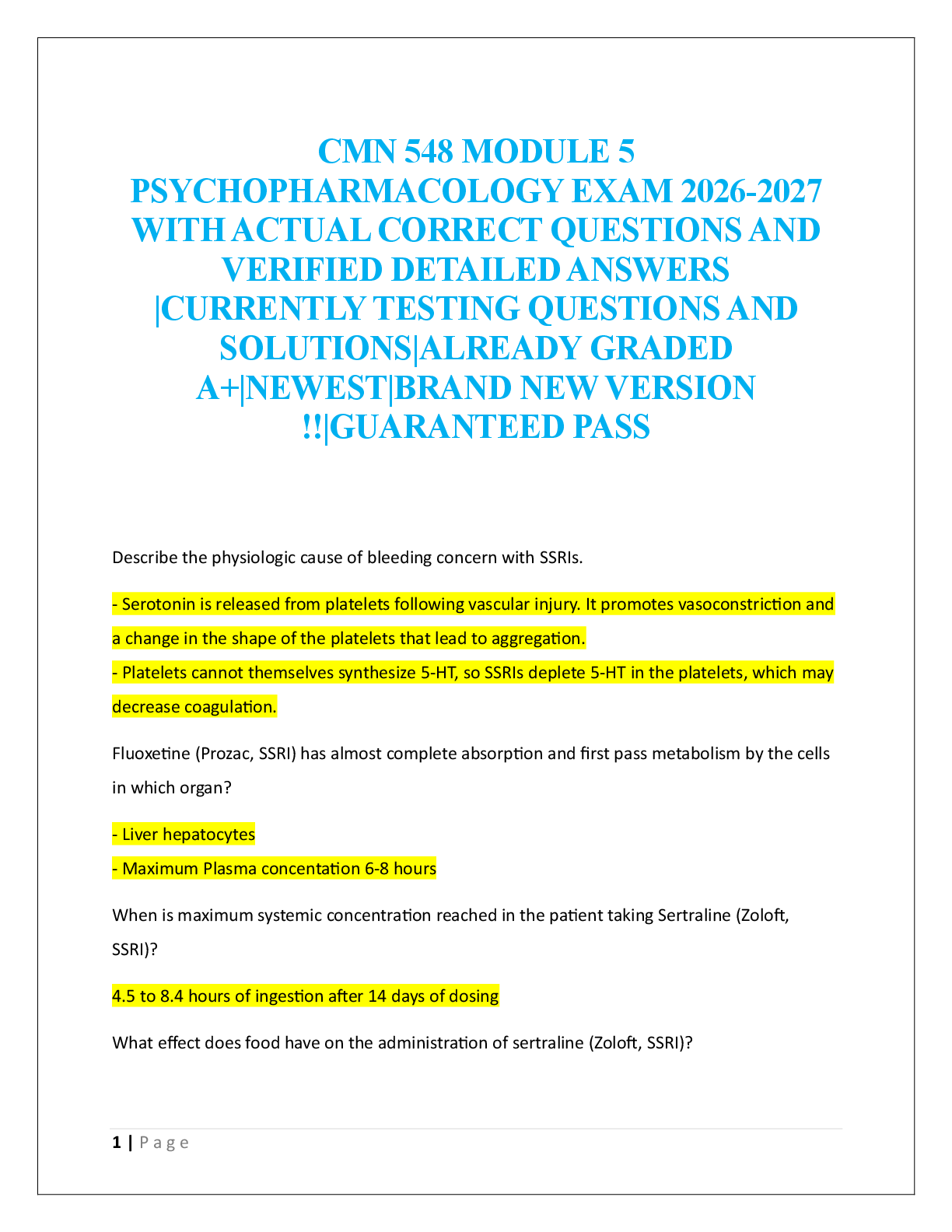 Psychology > EXAM > CMN 548 MODULE 5 PSYCHOPHARMACOLOGY EXAM (All)