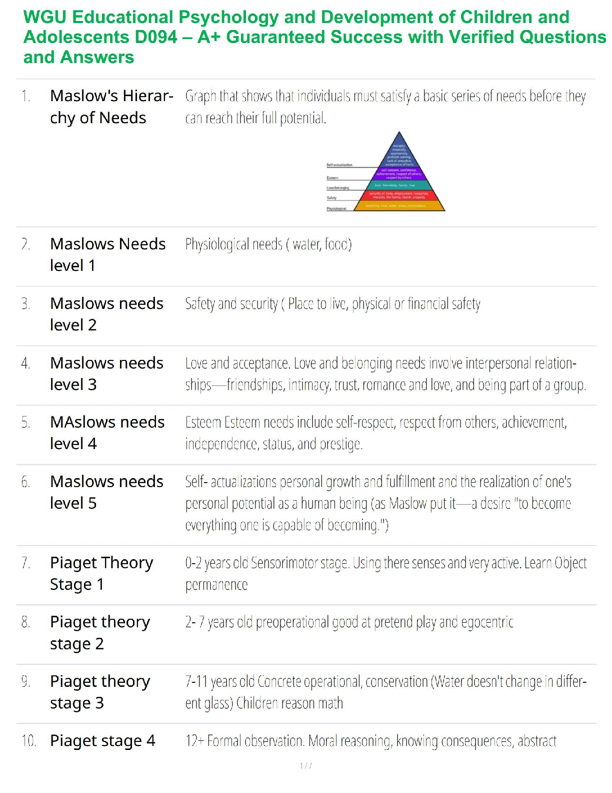 Psychology > QUESTIONS & ANSWERS > WGU Educational Psychology and Development of Children and Adolescents D094 – A+ Guaranteed Success with Verified Questions and Answers (All)