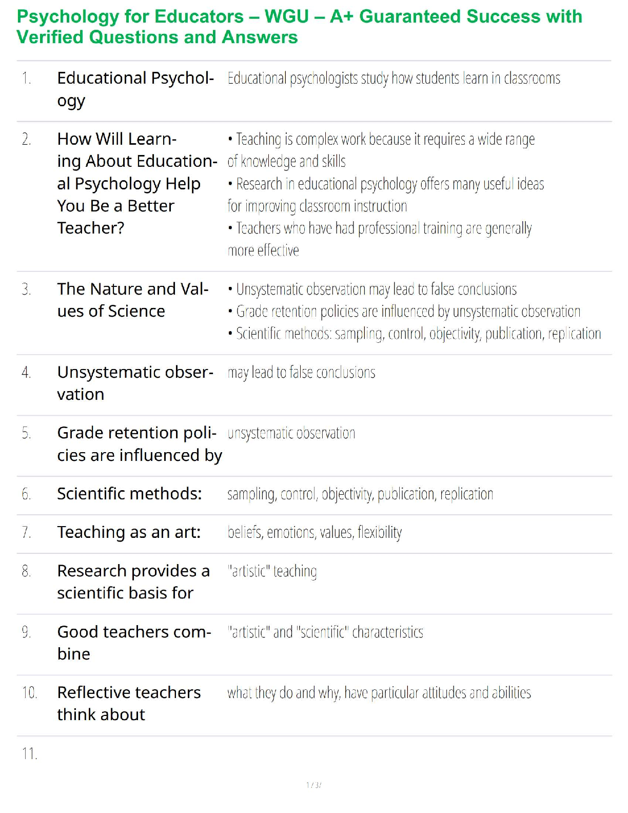 Psychology > QUESTIONS & ANSWERS > Psychology for Educators – WGU – A+ Guaranteed Success with Verified Questions and Answers (All)