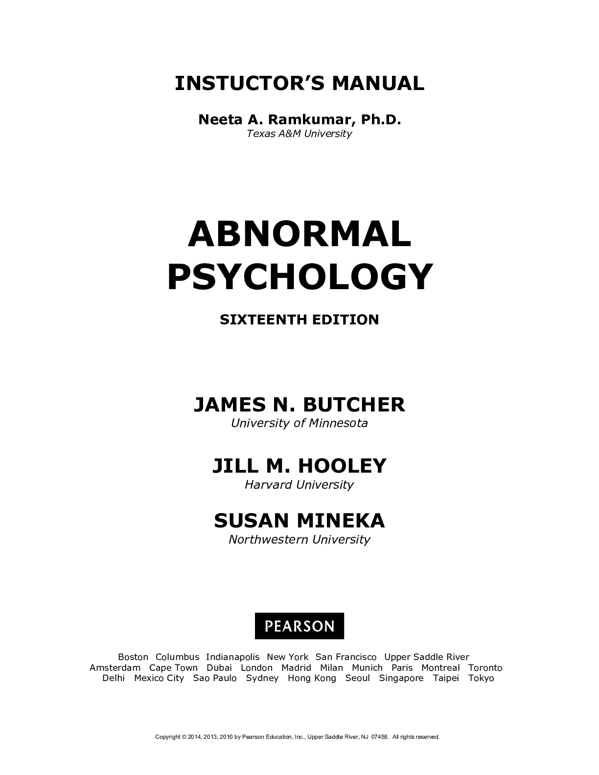 Psychology > TEST BANKS > Instructor Manuals for Abnormal Psychology, 16E James N. Butcher (All)