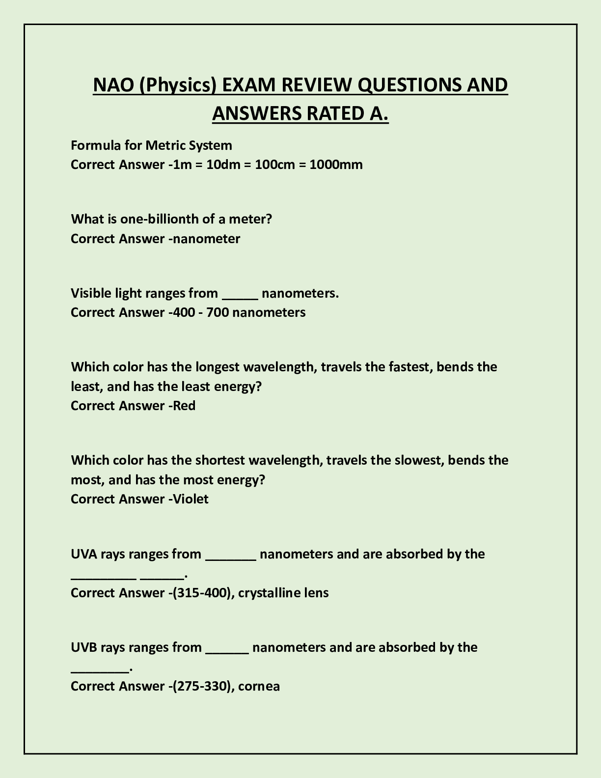 Physics > EXAM > NAO (Physics) EXAM REVIEW QUESTIONS AND ANSWERS RATED A. (All)